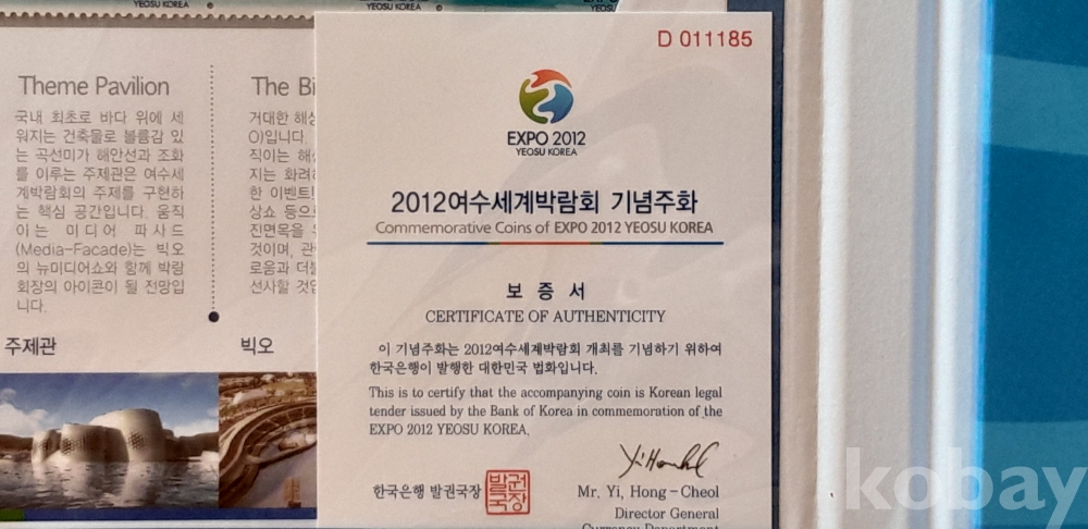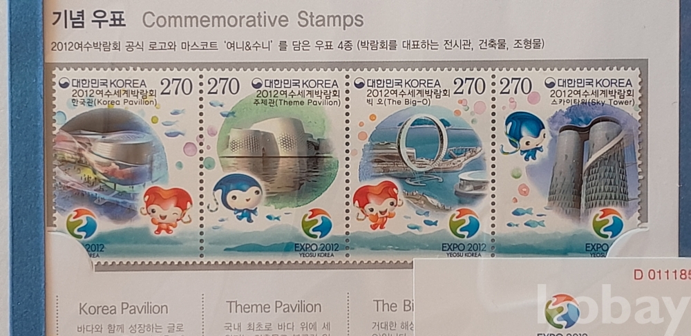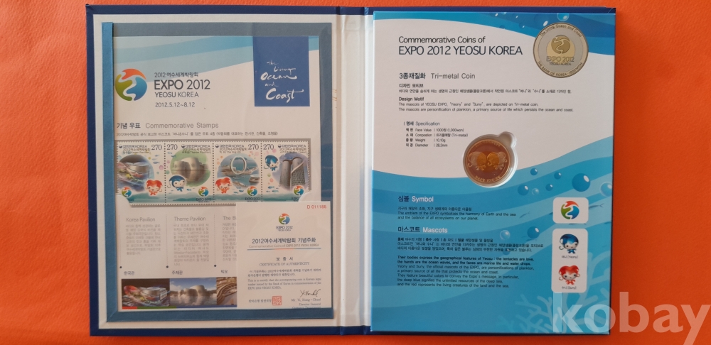 2012 여수 세계박람회 3종 재질화 및 우표 세트 입니다.