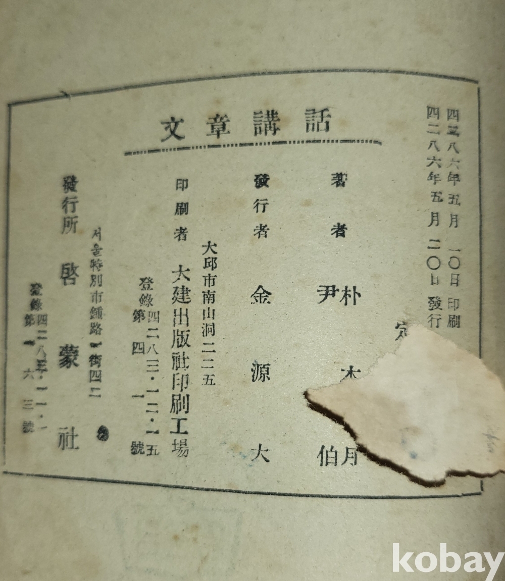 Kㅡ57차 책장 번 /// 박목월 윤백 공동저자 "문장강화" 1953년 판입니다요