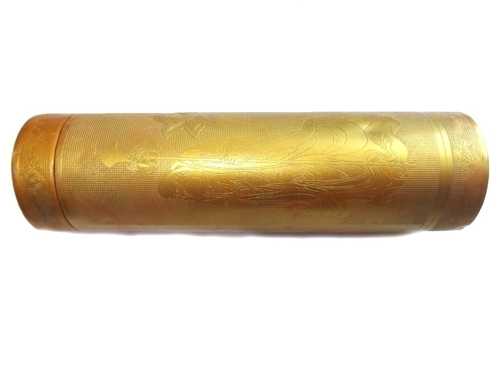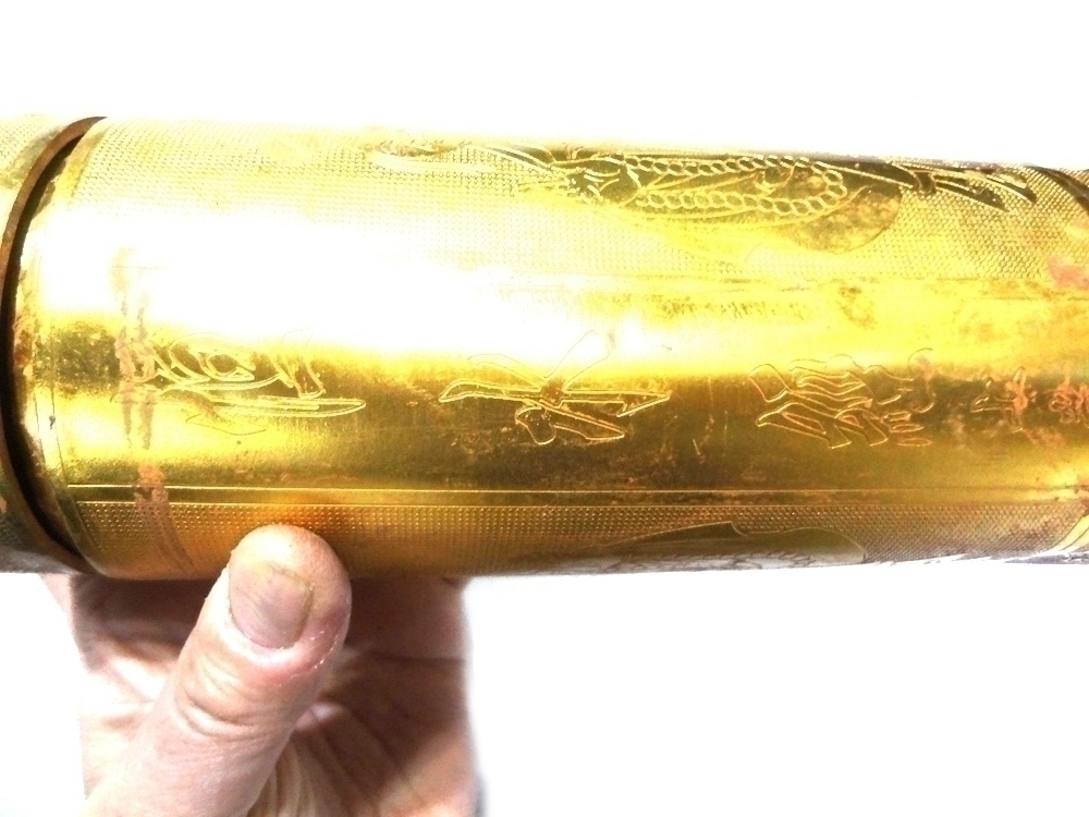 양철재질로 만들어졌으며 통안에 돌돌말아져서 들어가 있습니다.