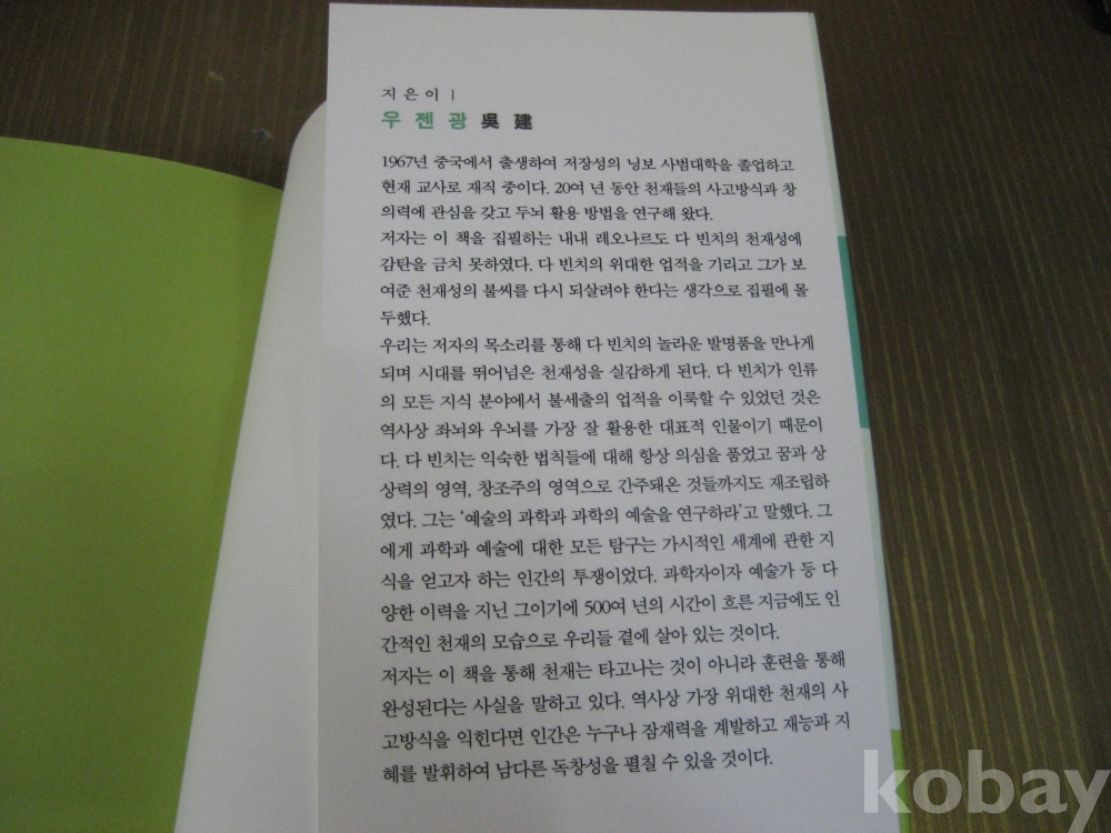 레오나르도 다빈치의 두뇌 사용법,,,,우젠광 지음,,,2014년