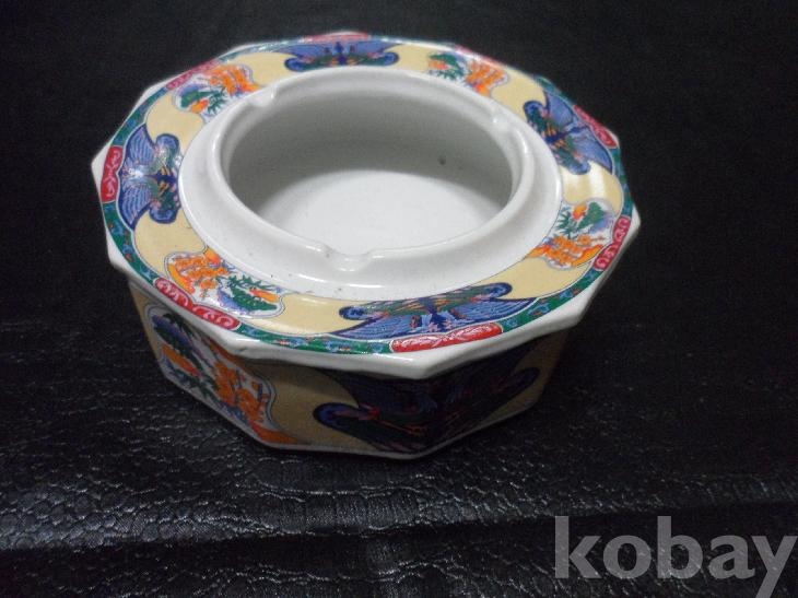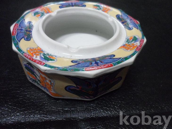 1. 12각 둥근 도자기 재떨이, 12각 면에 그림이 있음, 상태 상, 사진 참조