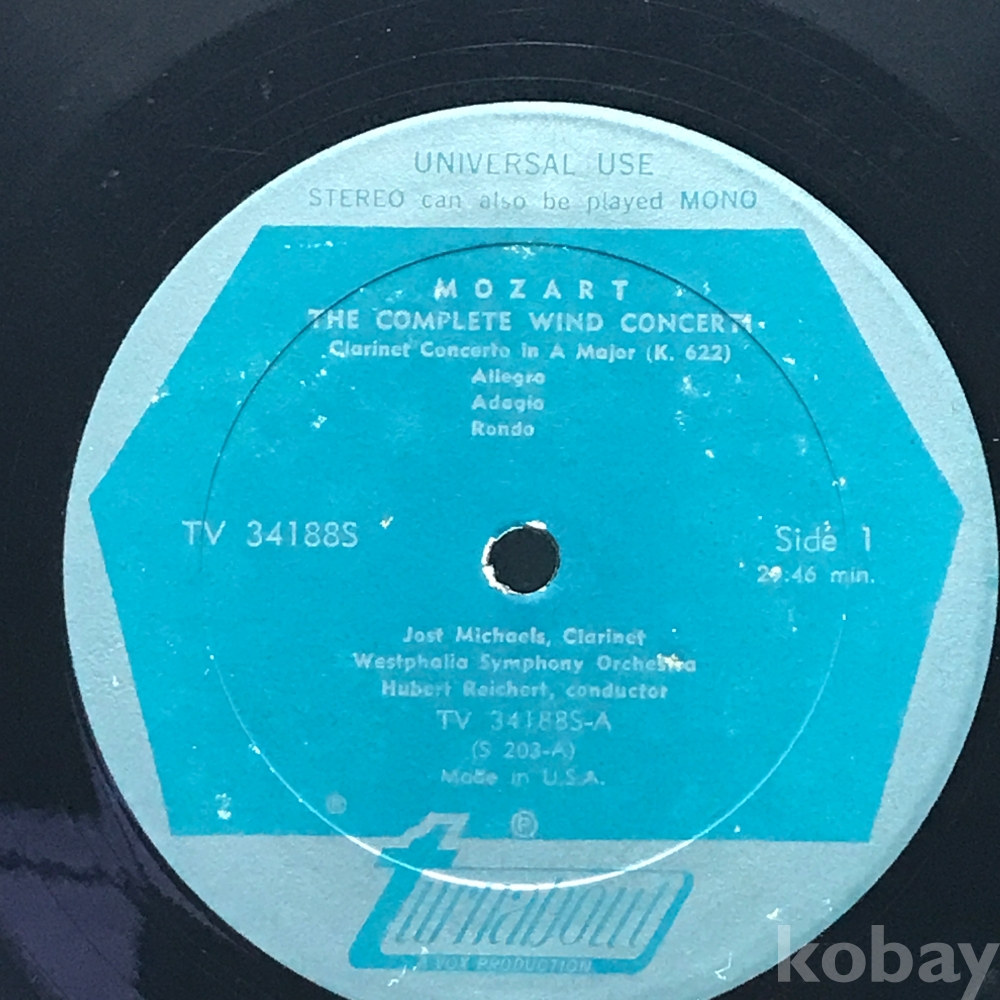 LP 83,623-180 MOZART THE COMPLETE WIND CONCERT Clarinet Concerto in A Major (K. 622) . 자켓 無 알판 EX 수입반