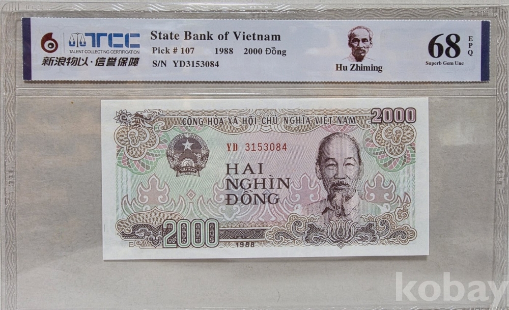 -1988년 베트남 2000동 지폐 TCC68 고등급 입니다.