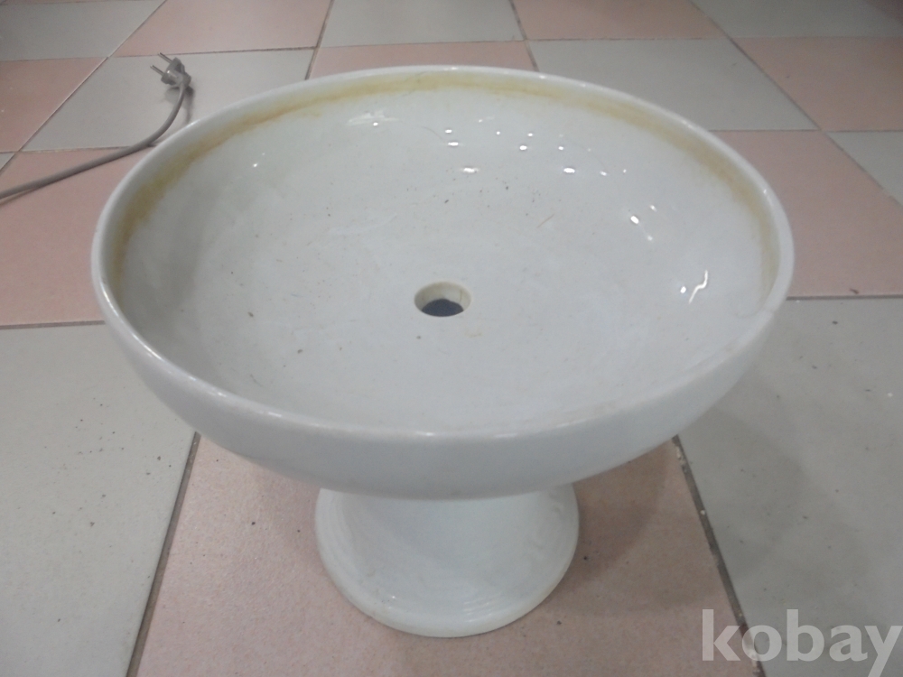 특이한 백자수반으로 중간구멍있고 받침대가긴 모래로와 좋은수석올리면 최고명품이되는 완벽한 특이한 백자 높은수반