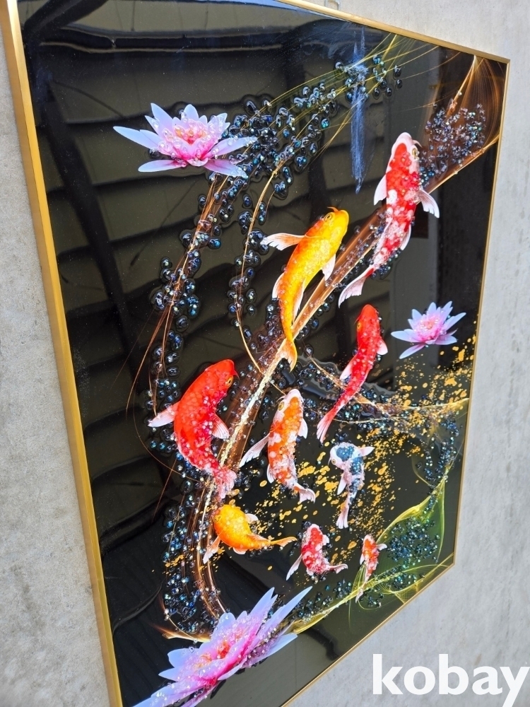 연꽃과 잉어를 표현한 액자 입니다.
