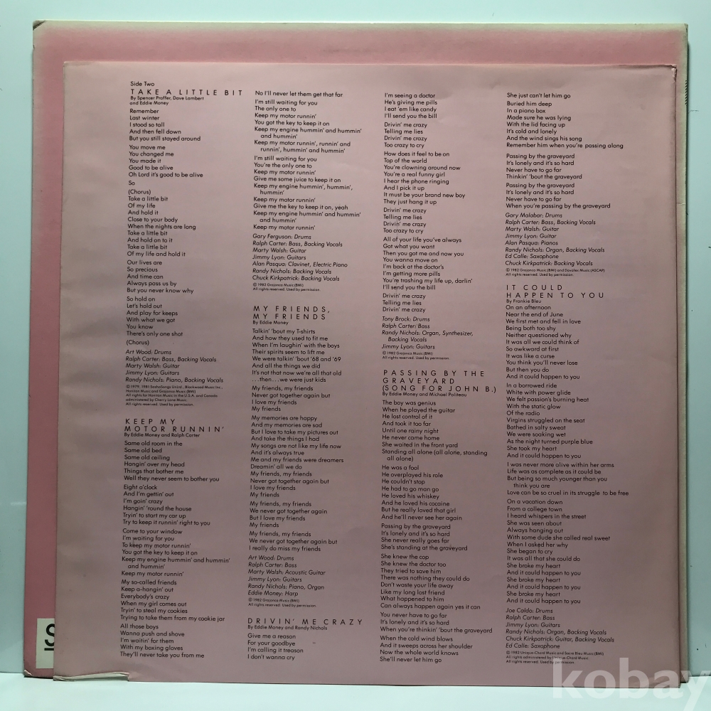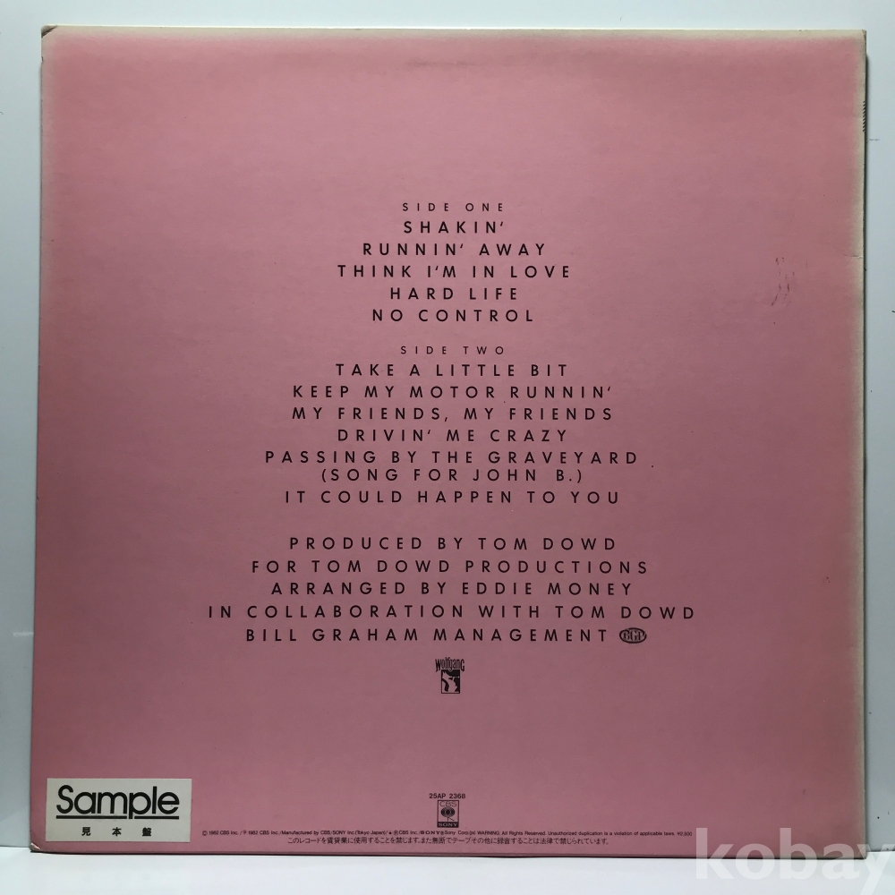 LP 83,800-47 Eddie Money - NO CONTROL . 자켓 EX+ 알판 EX+ 82 년 수입반