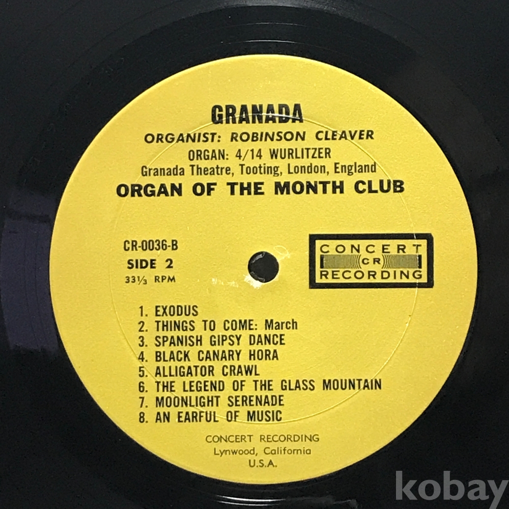 LP 83,623-220 GRANADA ORGANIST: ROBINSON CLEAVER - ORGAN OF THE MONTH CLUB . 자켓 無 알판 VG+ 수입반
