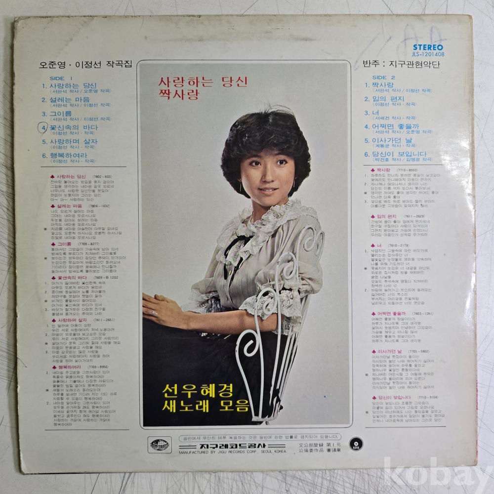 | 자켓상태 | VG : 주름, 접힘, 모서리 찢김 다수 | 음반상태 | VG : 생활 기스 다수, 가벼운 노이즈 존재 | 발매정보 | 초반 | 가사지여부 | 무 |
