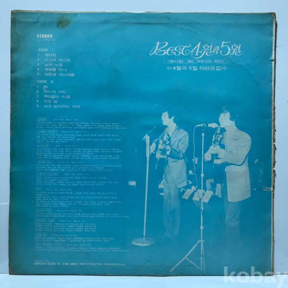 LP 19,050-38 4월과 5월 베스트 - 옛사랑/ 바다의 여인 유니버살 자켓 EX- 알판 VG VG+