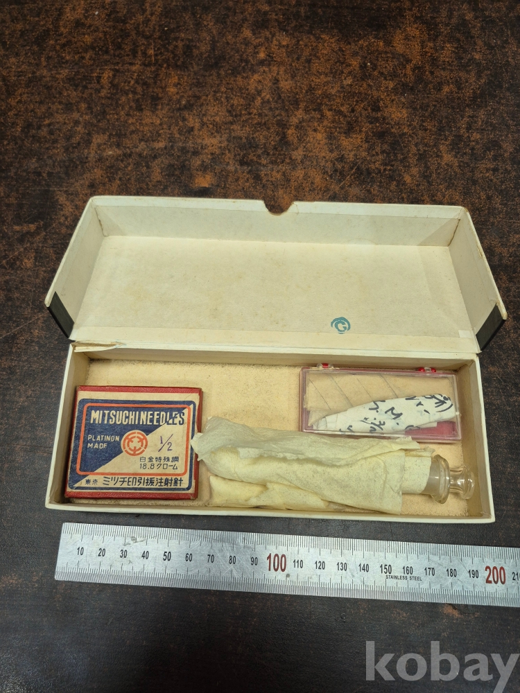 1960년대 의약품 종이 상자함 유리 주사기병 주사기 톱날등 다양한 의약품 19*8*3