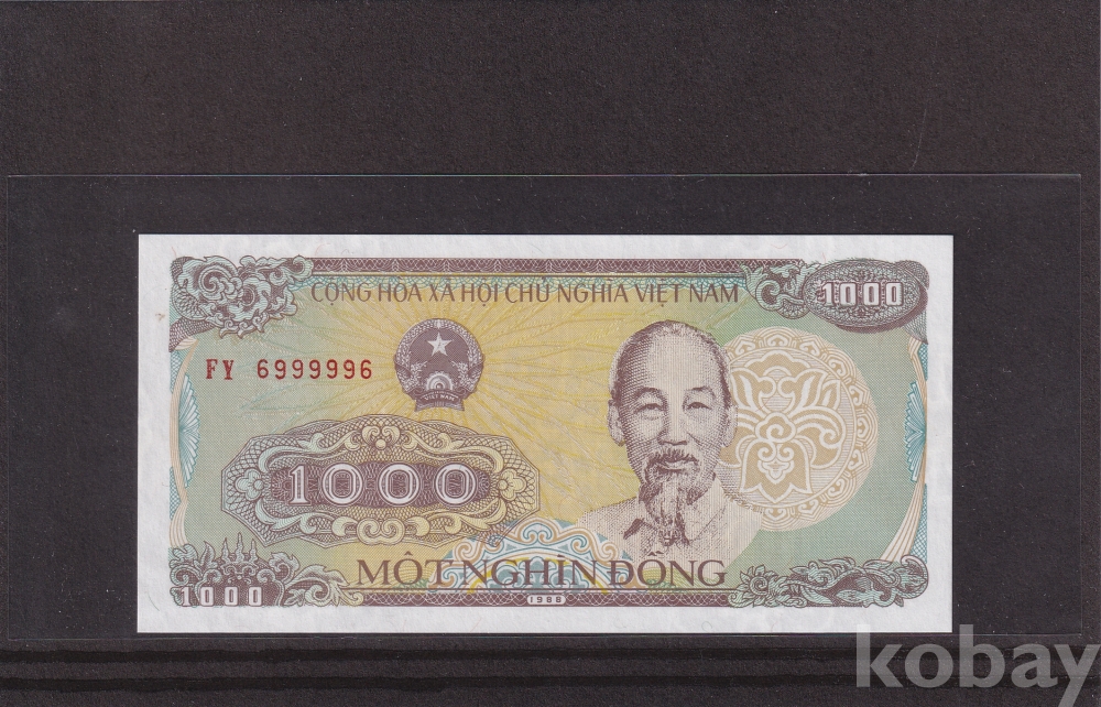 *베트남 특이번호 지폐 모음展* 1988년 1000동 FY 6999996 - 5봉 레이더 미사용 지폐