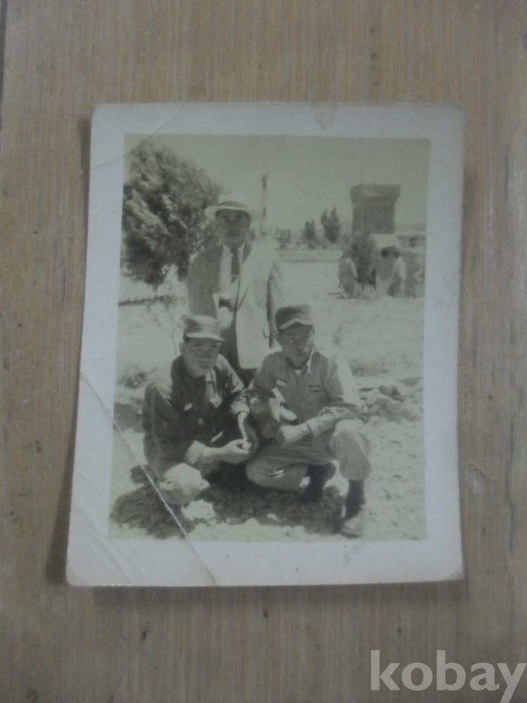 1279h)작은사진-50년대 부대 앞에서 중절모 신사와 군인들 사진.