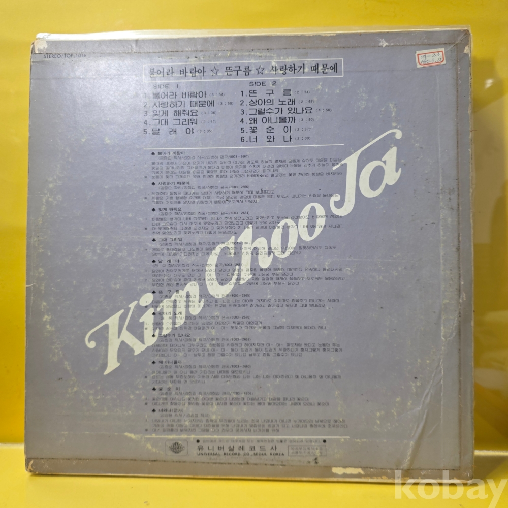 | 자켓상태 | EX : 약간의 마모, 모서리 찢김 존재 | 음반상태 | EX : 재생에 영향 없는 가벼운 기스 존재 | 발매정보 | 초반 | 가사지여부 | 무 |