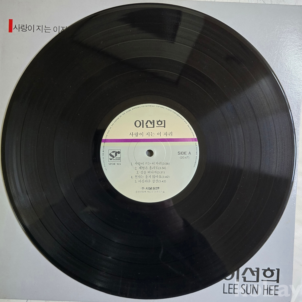 | 자켓상태 | VG : 주름, 접힘, 모서리 찢김 다수 | 음반상태 | VG : 생활 기스 다수, 가벼운 노이즈 존재 | 발매정보 | 초반 | 가사지여부 | 유 |