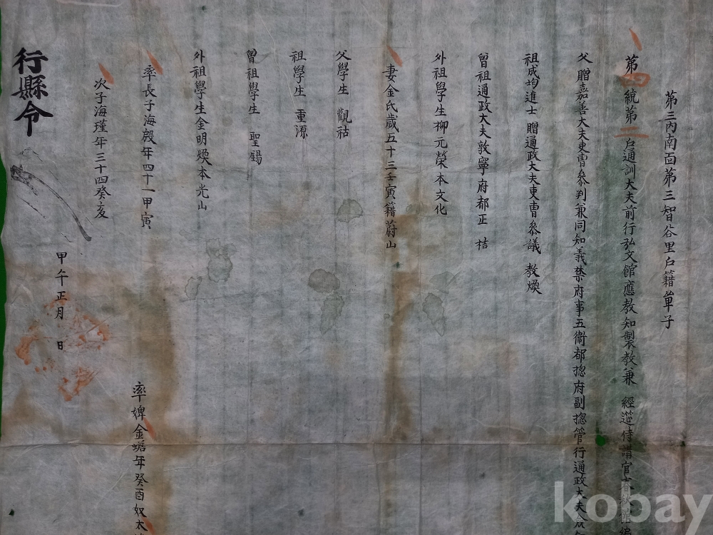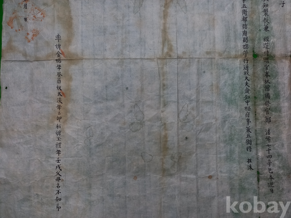 얼룩 등 세월의 흔적 있으며, 중간 접힌 부분 헤짐 있습니다