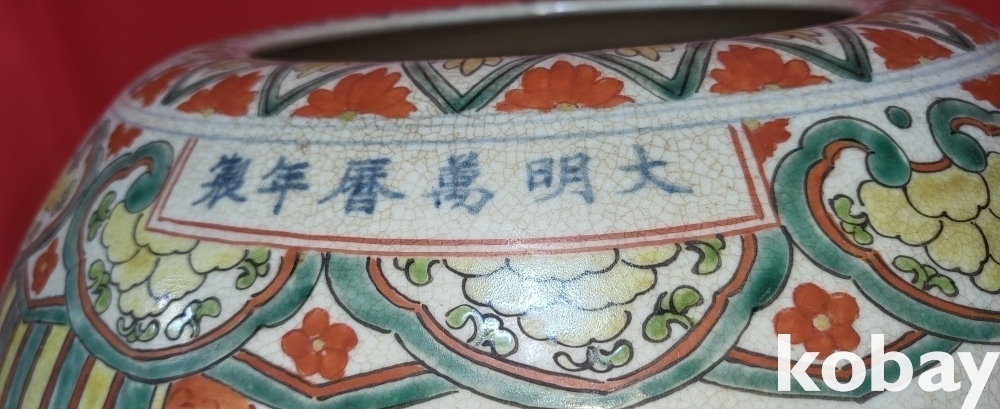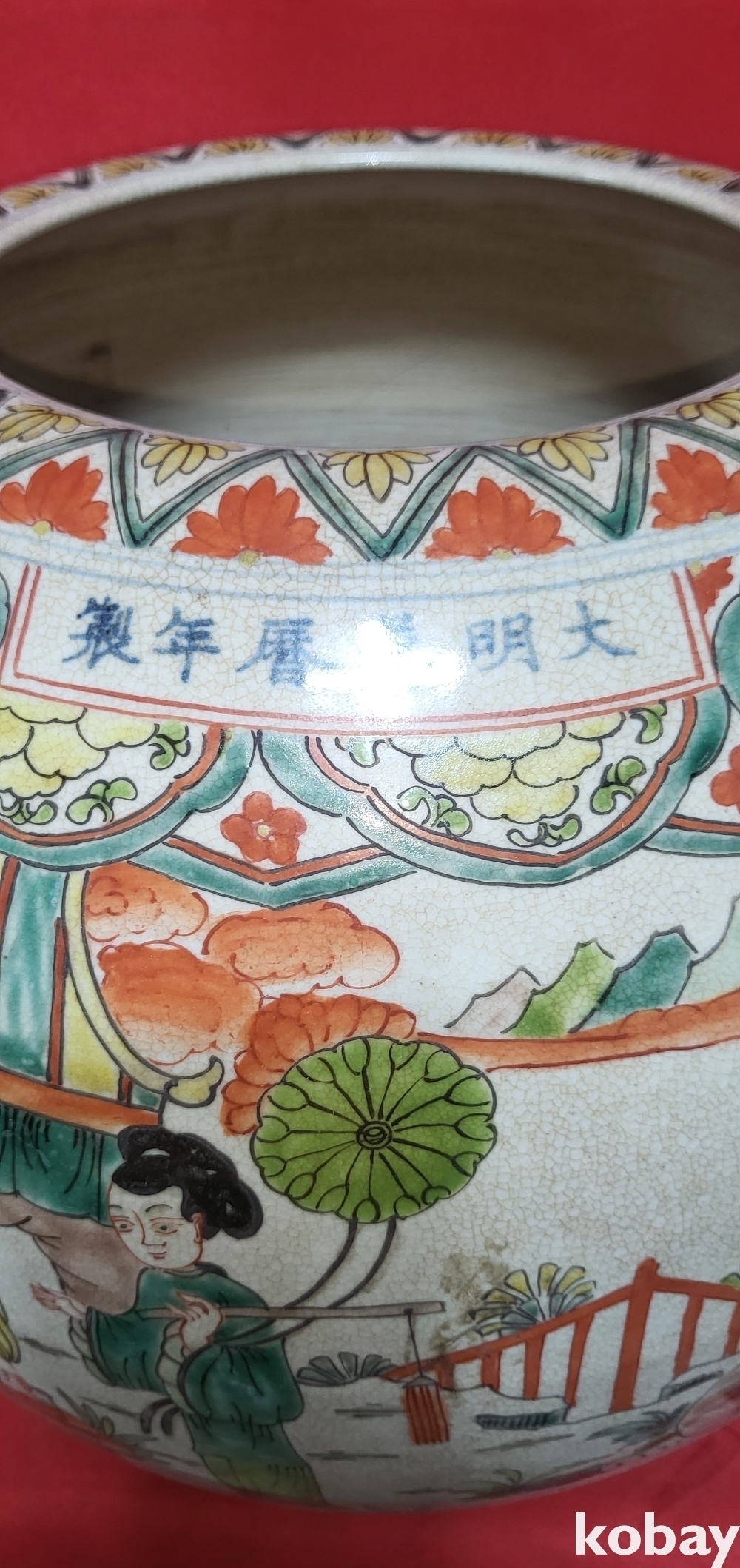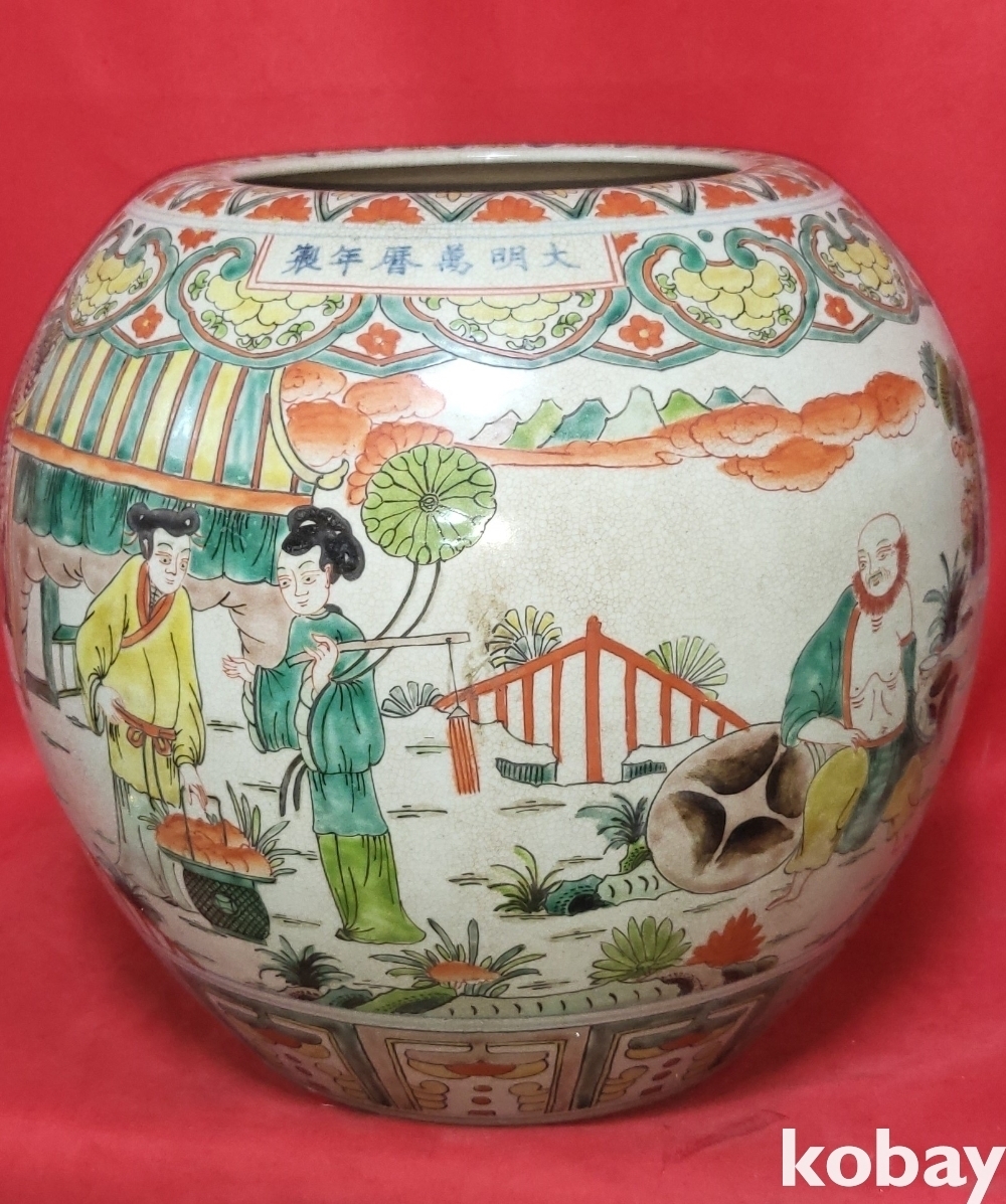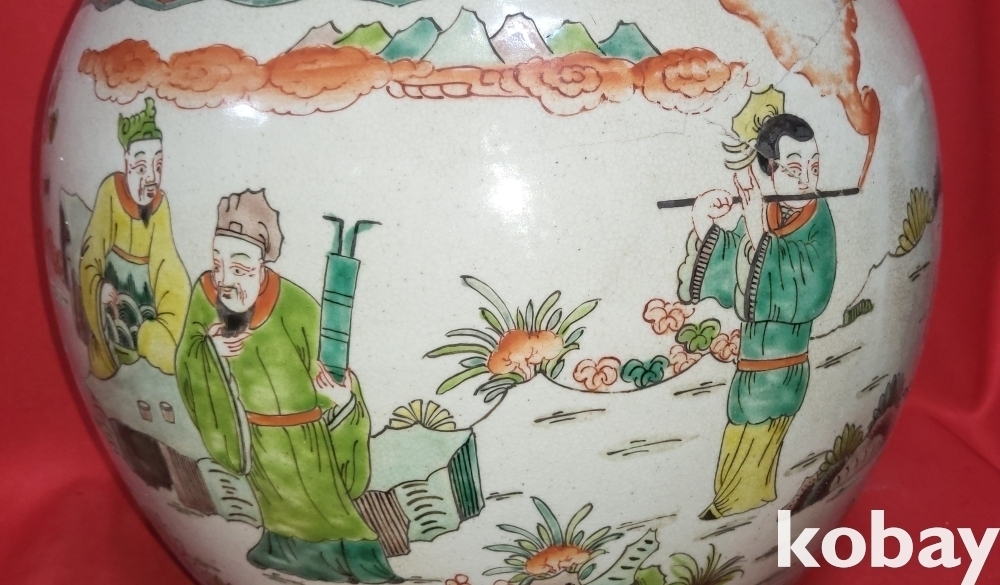대명만력연제(1573ㅡ1620) 관지 청화 유리홍 송하인물(松下人物) 신선도(神仙圖)문양