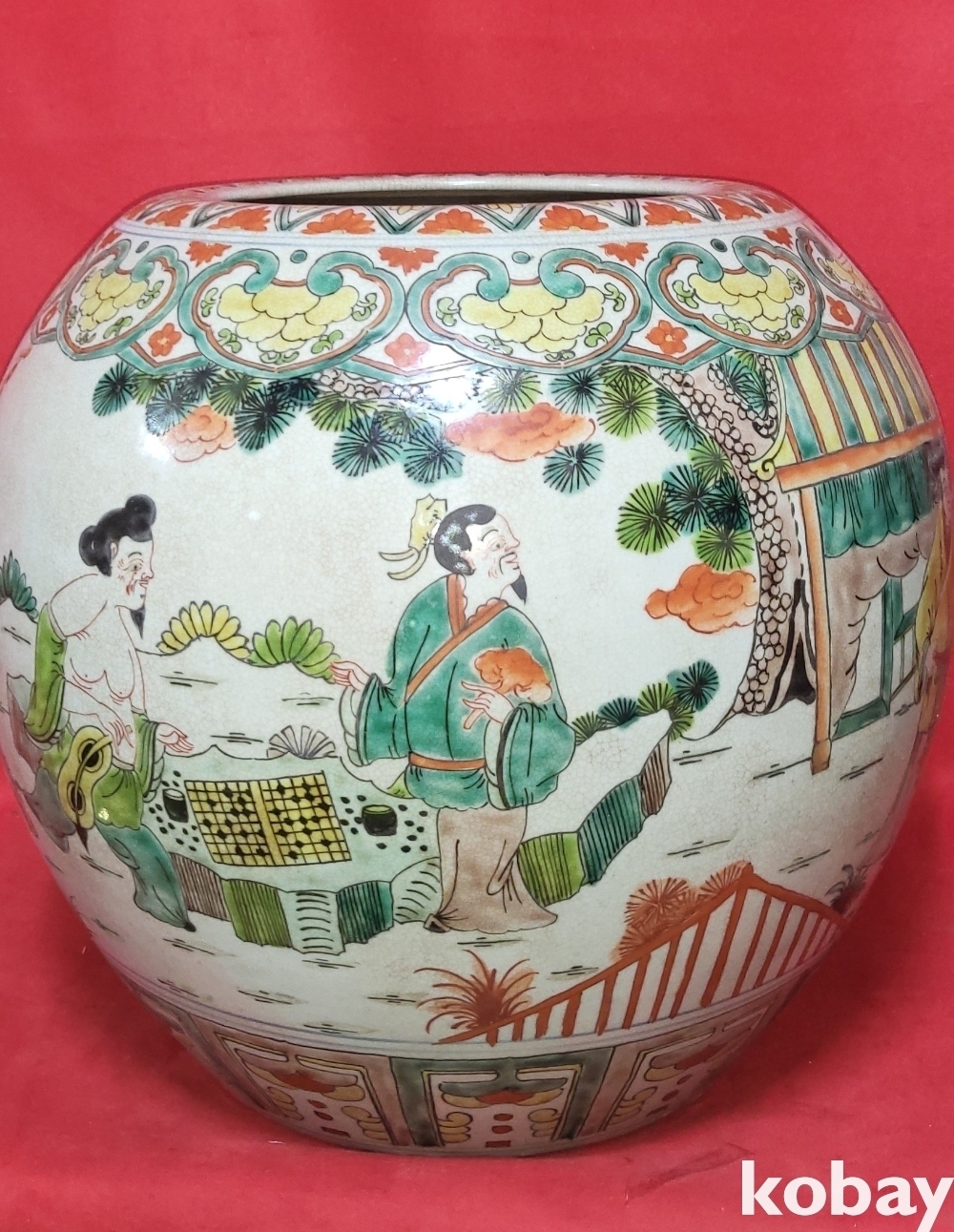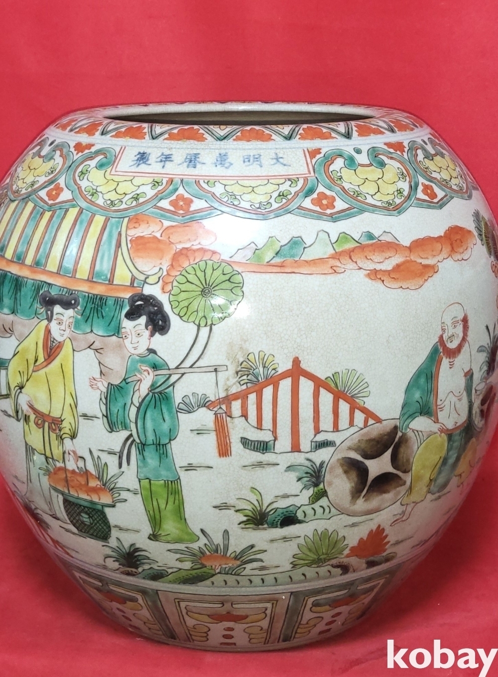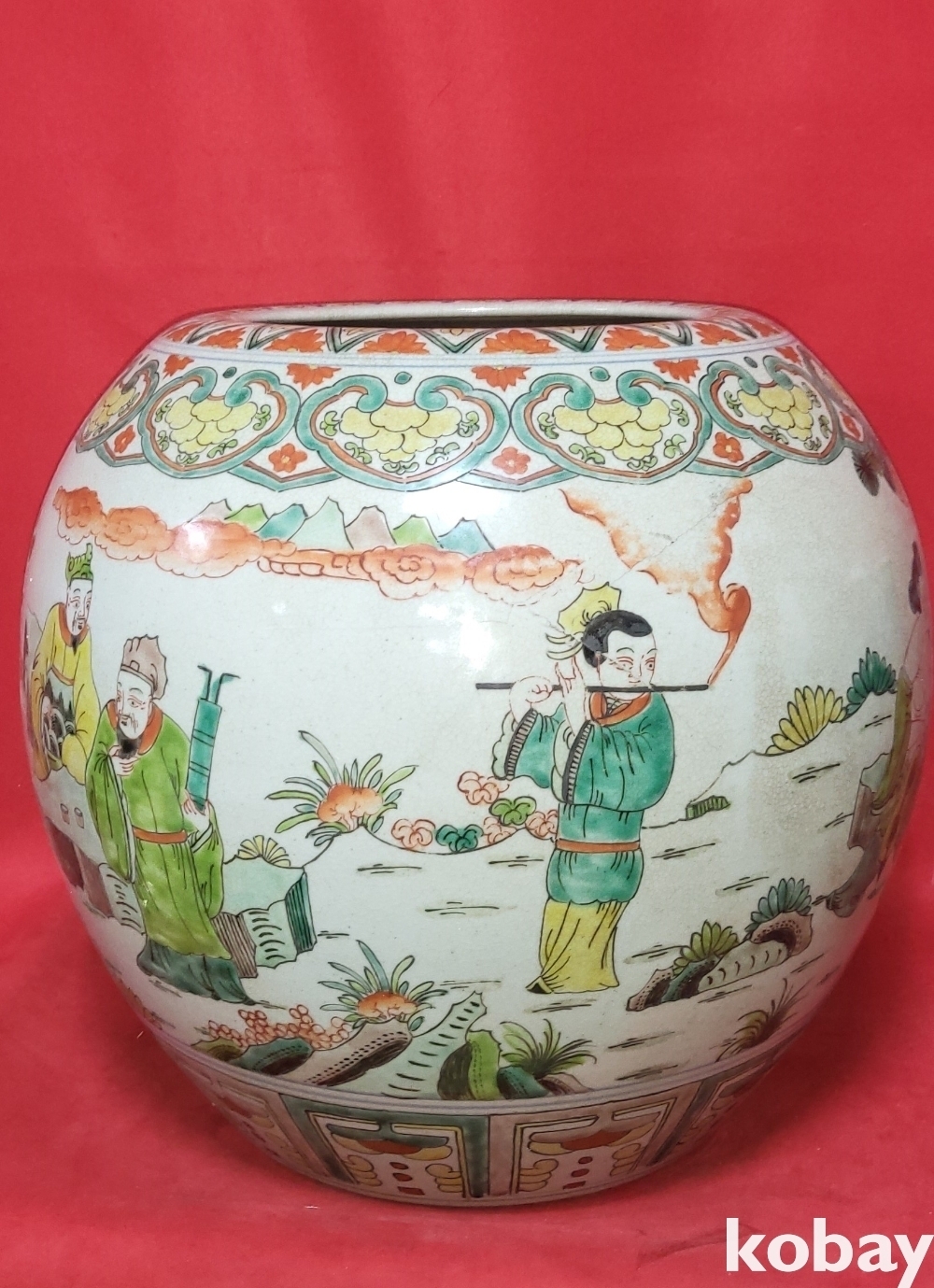 대명만력연제(1573ㅡ1620) 관지 청화 유리홍 송하인물(松下人物) 신선도(神仙圖)문양
