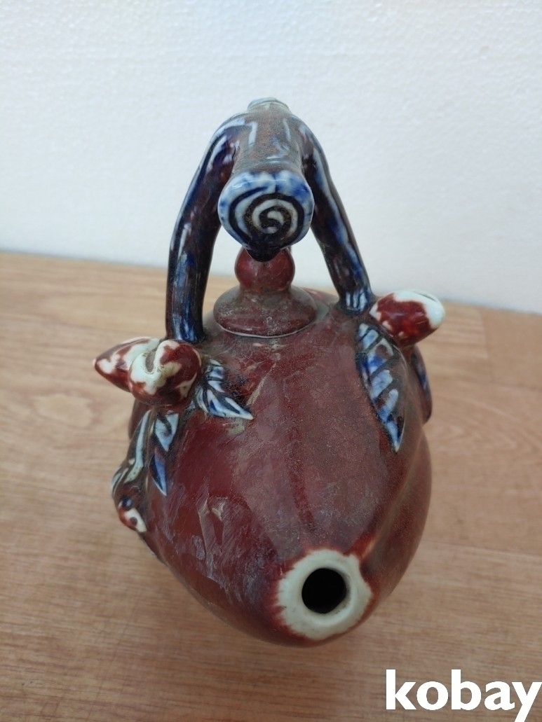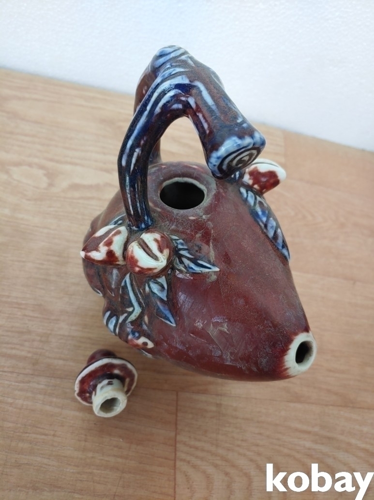 복숭아 모양의 주전자 도자기 입니다.