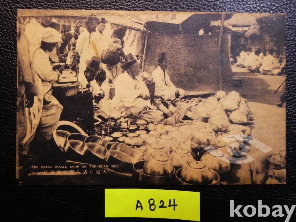 ▣근대한국엽서(진본): 큰 길가에서 요강을 비롯한 동 제품을 파는 조선 상인/1매/매우 귀함/일제강점기 사진엽서, 그림엽서, 회엽서. A824