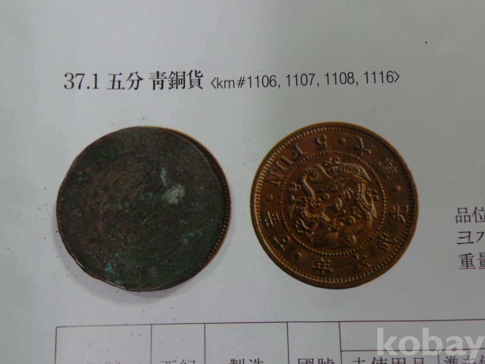 구한국 주화 오분 조선 개국 505년 동전