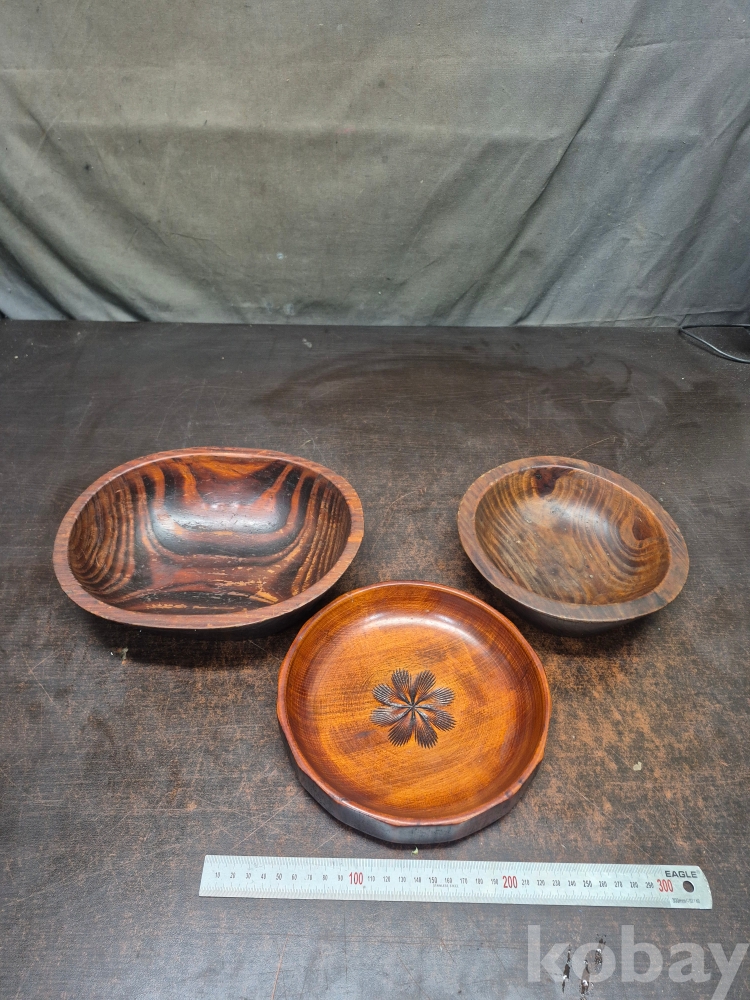 원목을 깍아 만든 소형 원목 쟁반1점 원목 나무그릇 2점 1점은 5센티 갈라짐 있어요 26*20*7