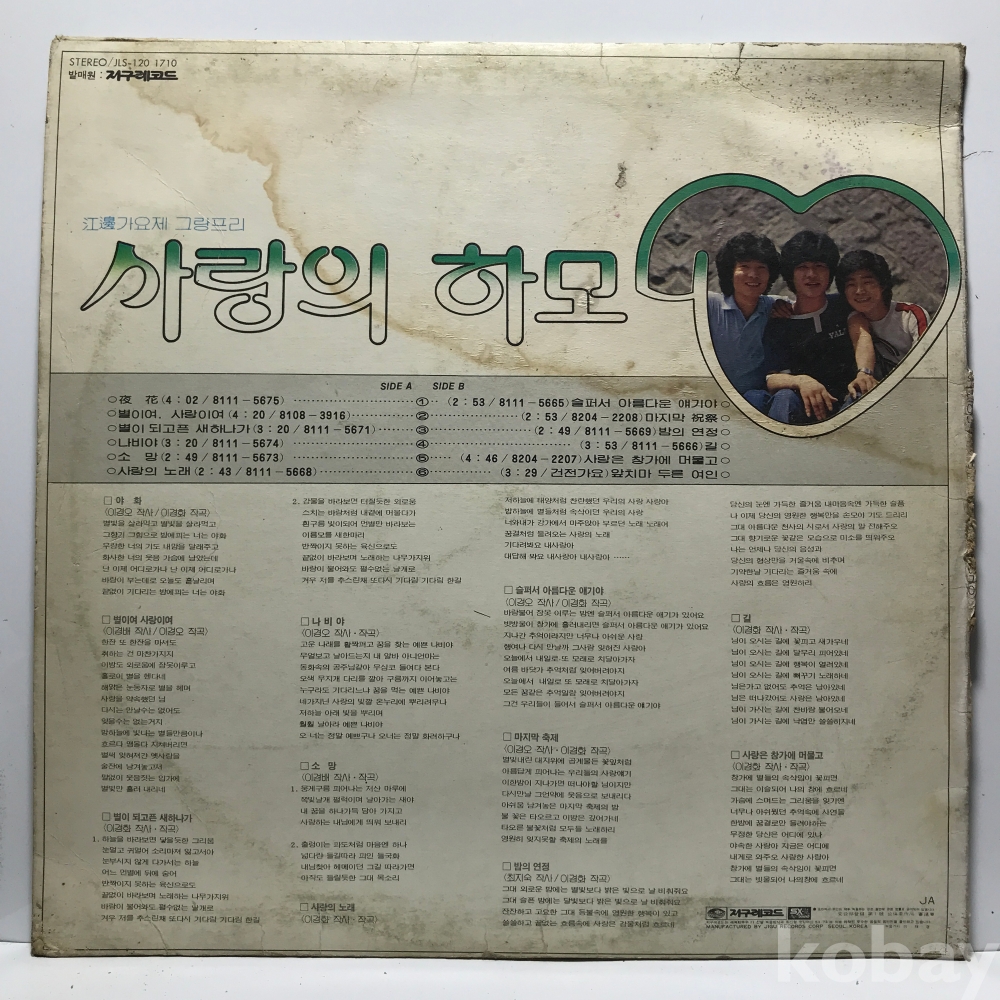LP 83,750-19 사랑의 하모니 - 야화 / 슬퍼서 아름다운 얘기야 . 자켓 VG 알판 VG 80 년 국내반