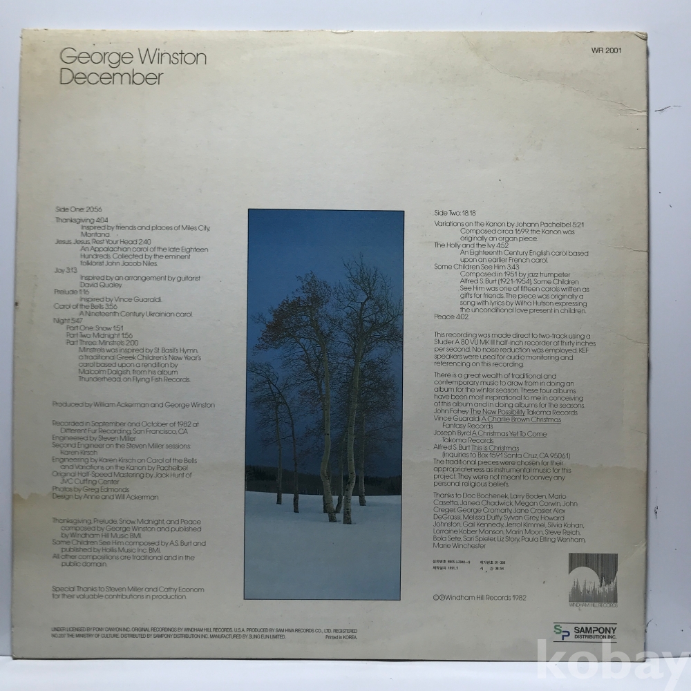 LP 83,750-76 George Winston - December . 자켓 EX 알판 VG+ 91 년 국내반
