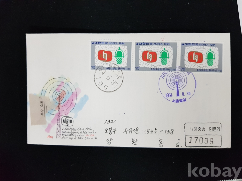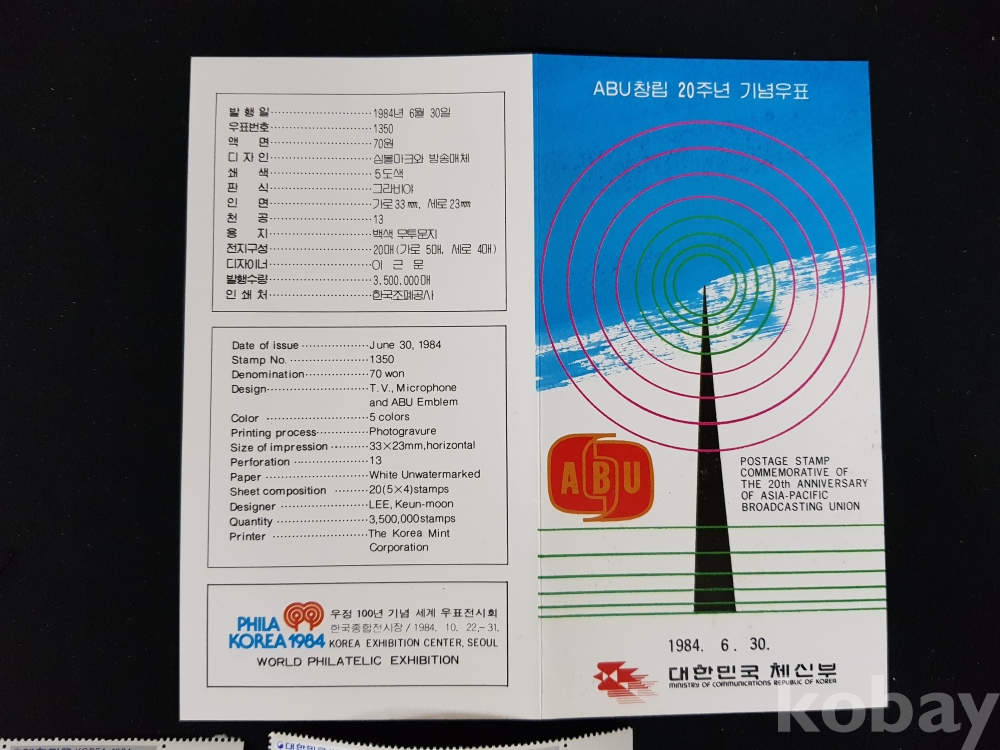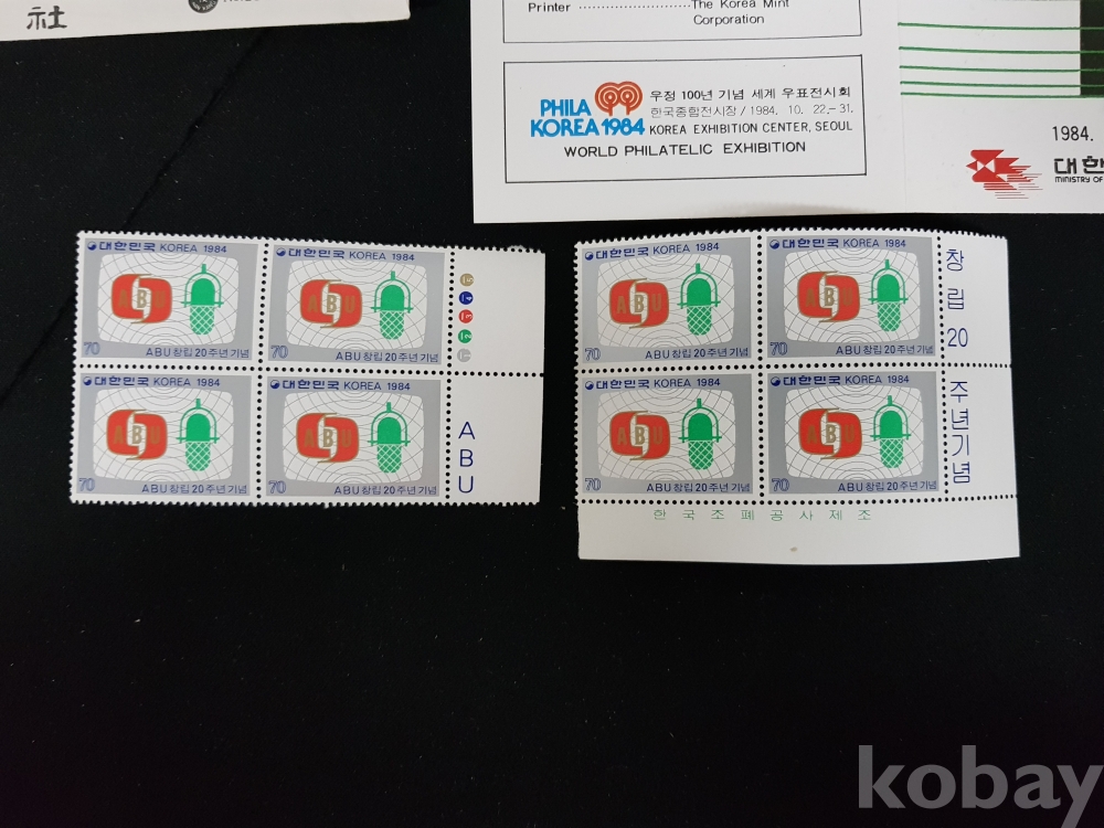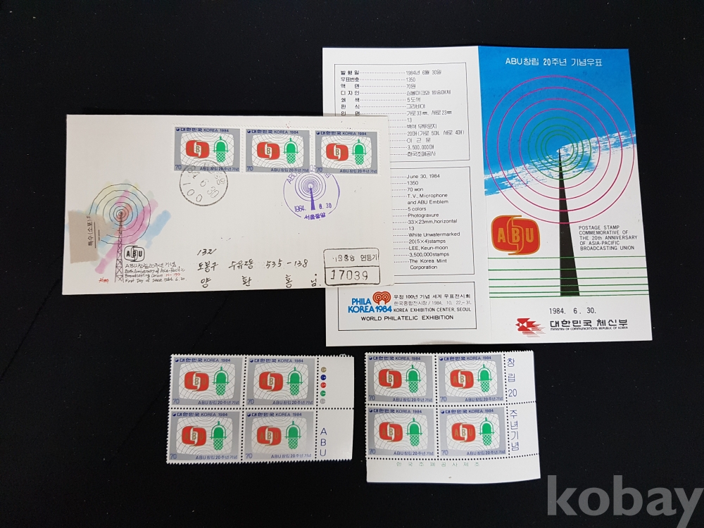 - 1984년 ABU창립 20주년 기념 안내카드, 초일봉피, 명판 등 모음