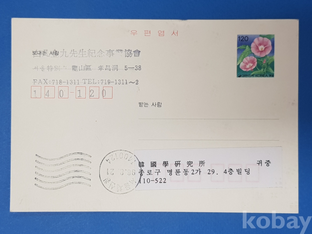 **** 근현대사 자료 - 우편엽서/96.8.21