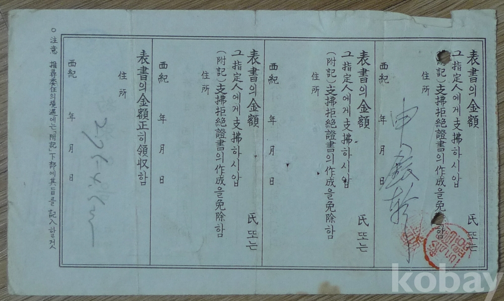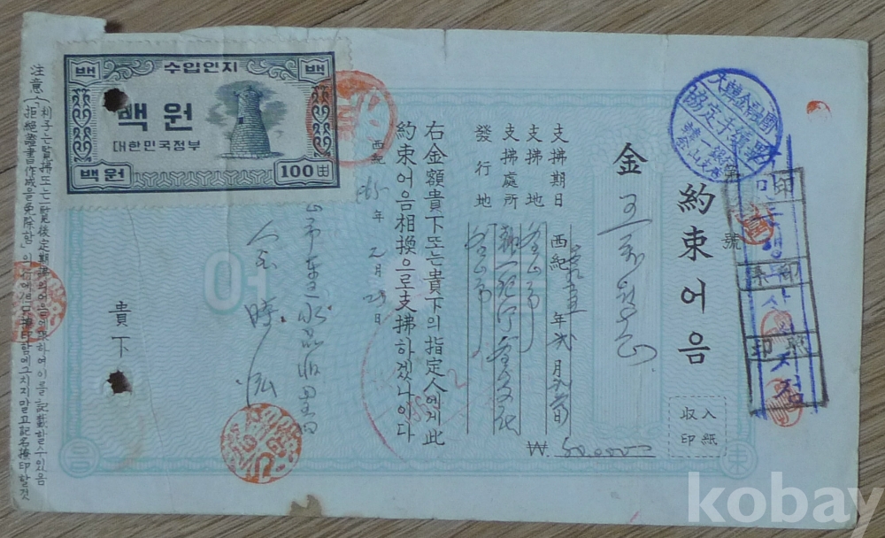 1965년 한일은행 부산지점 지급 약속어음
