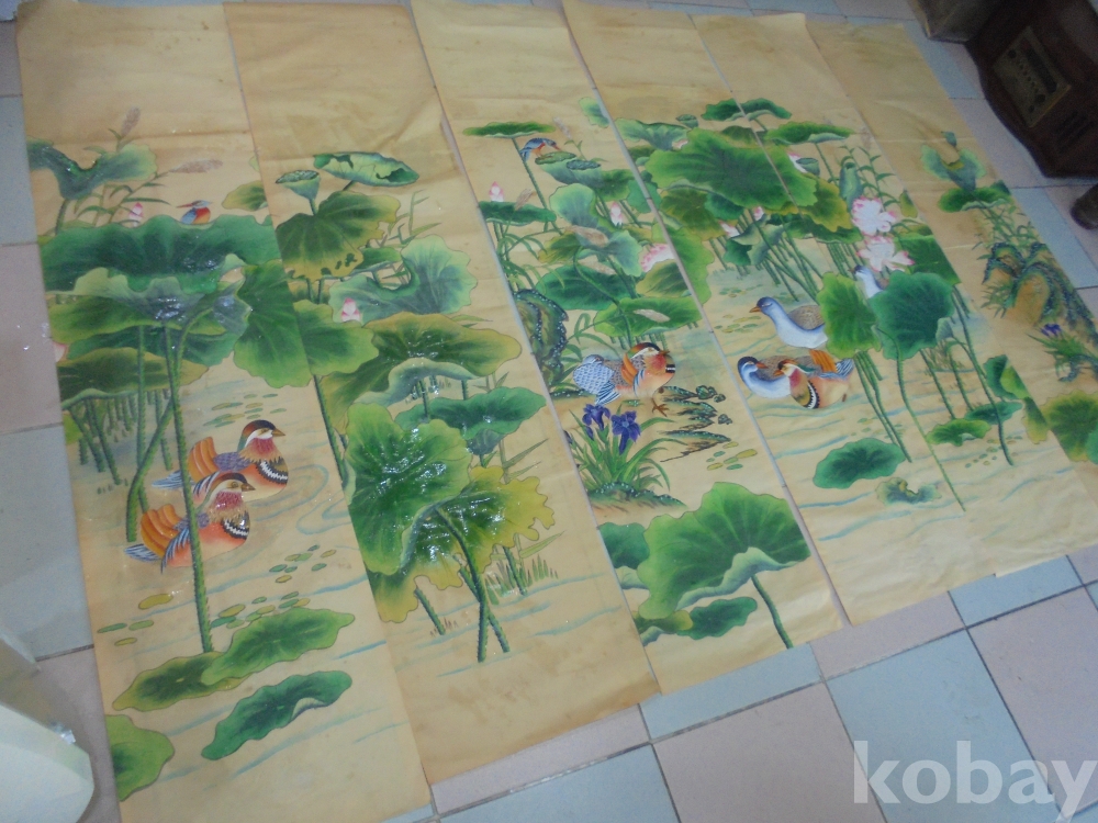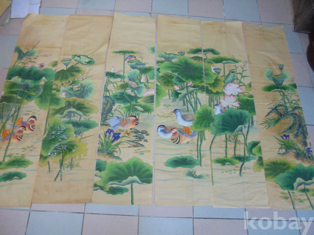 잘못배치한 최고인기품인 연화 원앙화 연결한게 그린 6폭 폭당 가로세로 34 x 140 cm 외사진참조