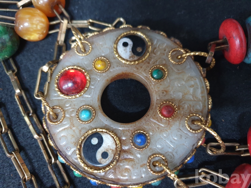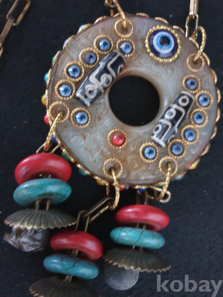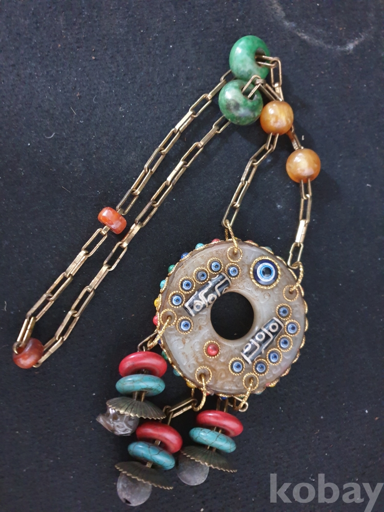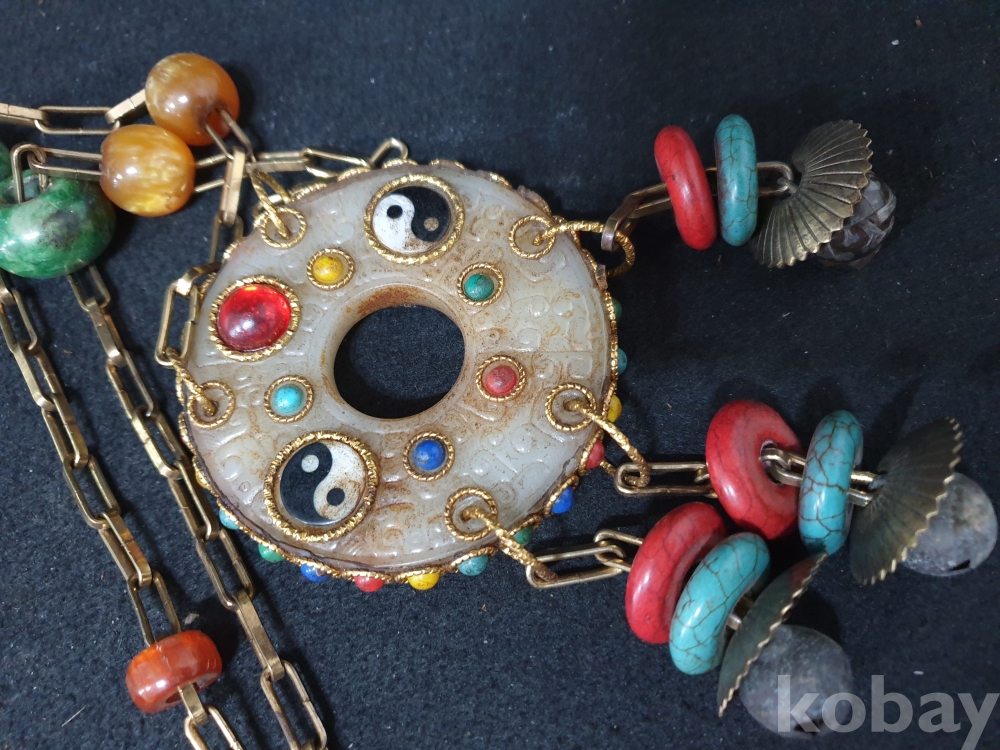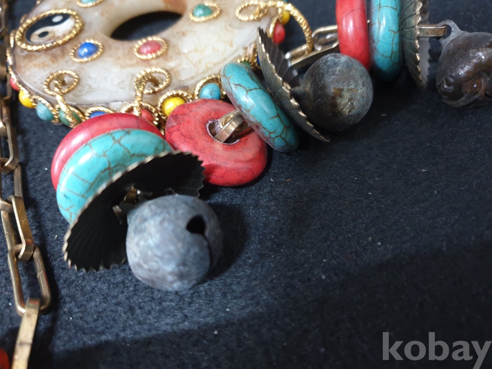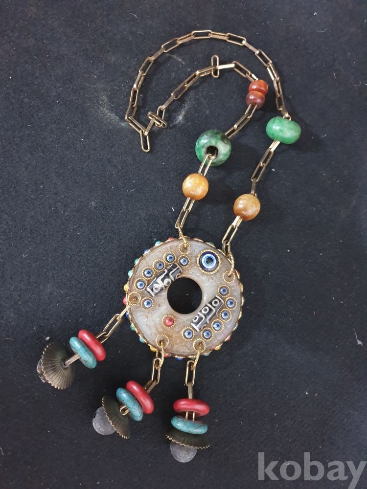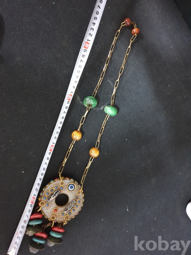 사이즈:약50센치. 무게:274그람. 설명:미지의 종교 세계 티벳의 화려한 장식품-청량한 방울소리의 아주 화려한 천주.구슬보석,녹청석등 보석 장식의 티벳 화전옥 염주입니다.최대의 사진으로 본 기물의 이쁜 모습 보여드리겠습니다.상태 양호합니다.사진 참고 바랍니다.