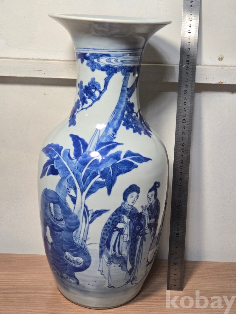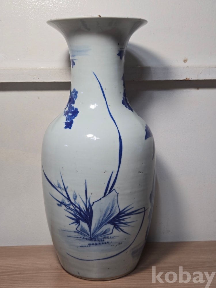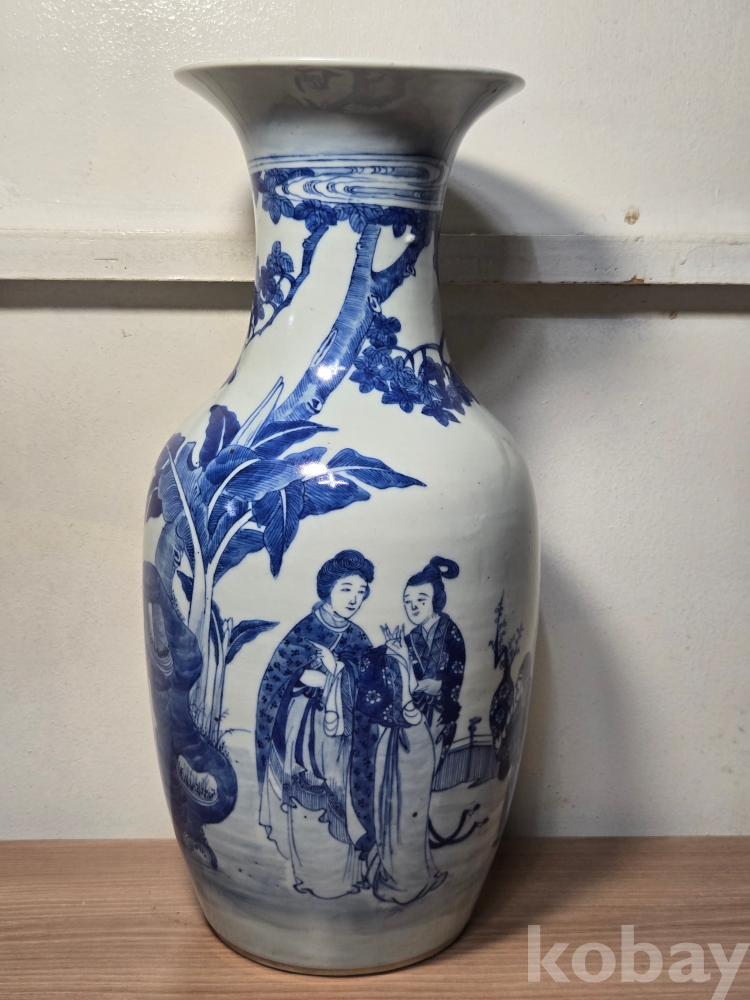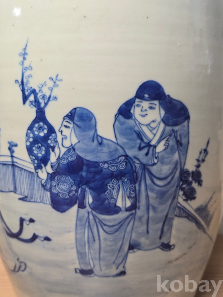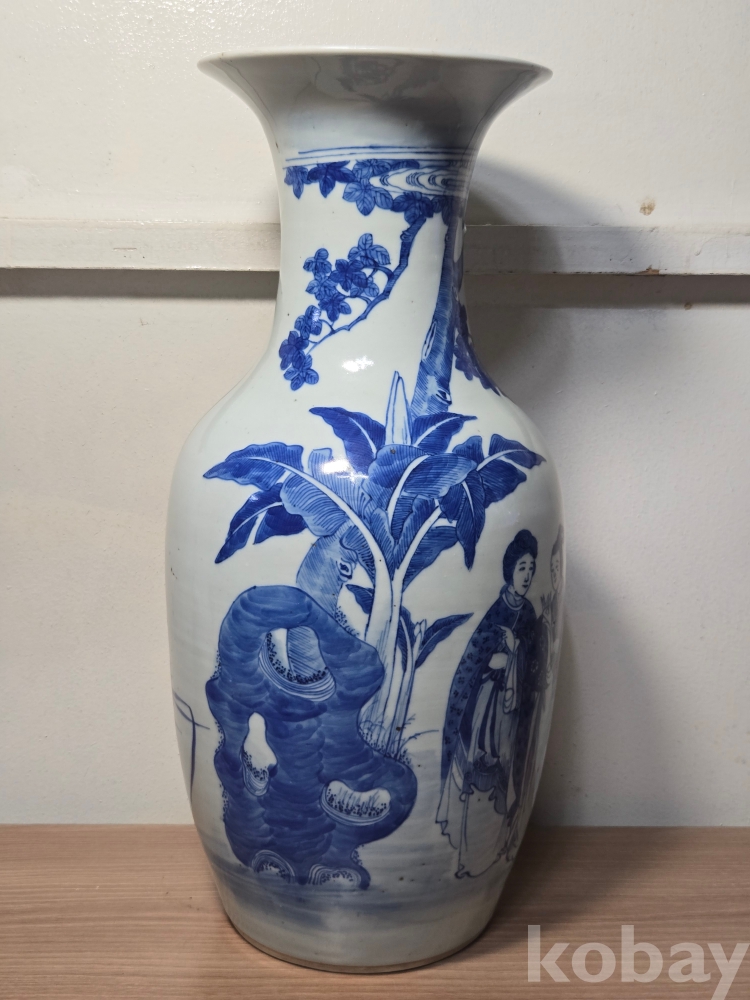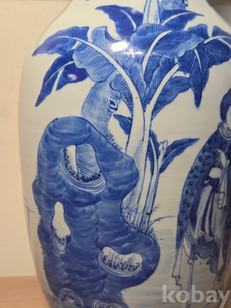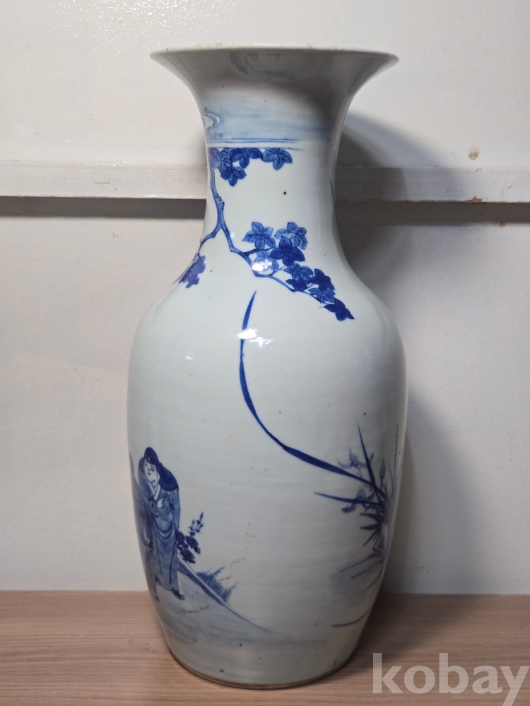 별도의 관지는 없으나 기형과 청화안료의 발색, 회화의 화풍,기법등으로 볼때 아마도 청대후기 덕화요의 관요급 청화백자 작품으로 판단되는 청화백자 고사인물문 화병 故事人物文花甁 입니다.