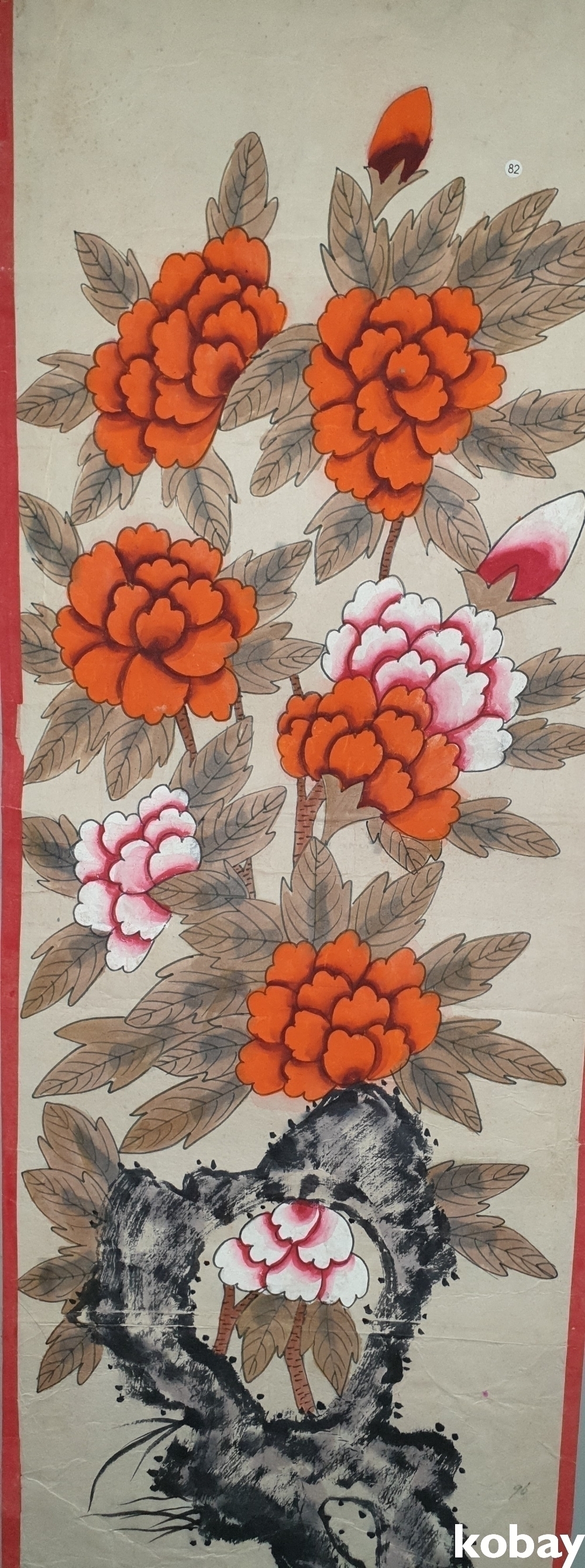 연대감이 좋은 종이에 채색한 괴석에 목단 민화작품 입니다,