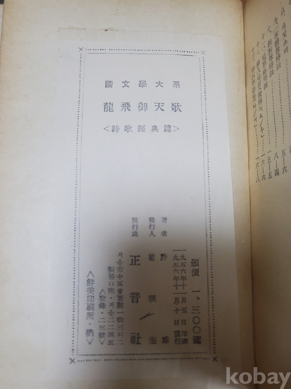 1. 용비어천가, 허웅, 정음사, 1956년, 352쪽, 상태 상, 사진 참조