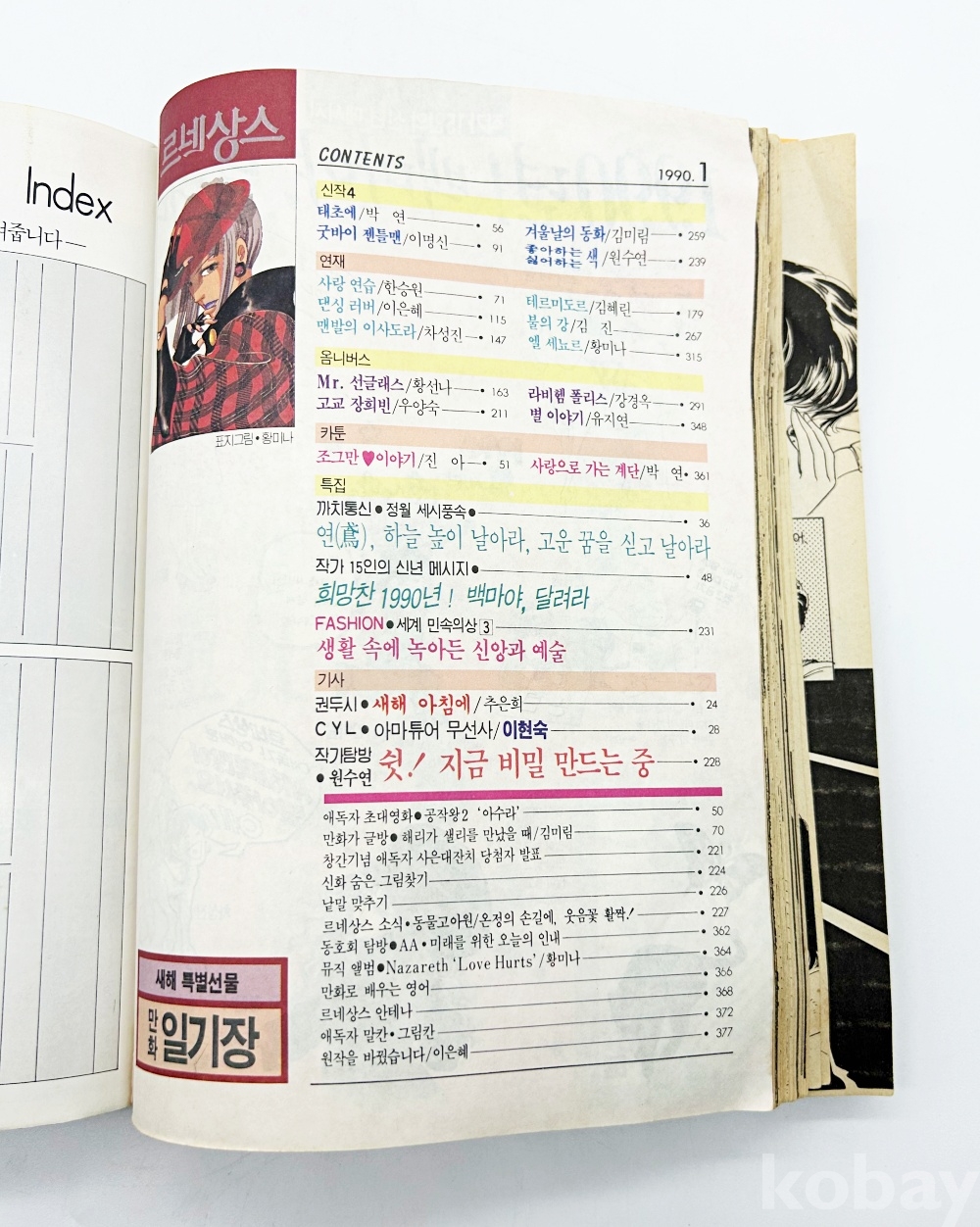 상품 설명 | 최초의 순정만화 전문 잡지 '르네상스' 1990년 1월호이다. 1세대 인기 작가 원수연, 황미나 등의 만화가 수록되어있다. 총 378p. | ||