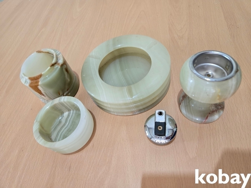 옥돌 재털이, 라이타, 담배 합 입니다.