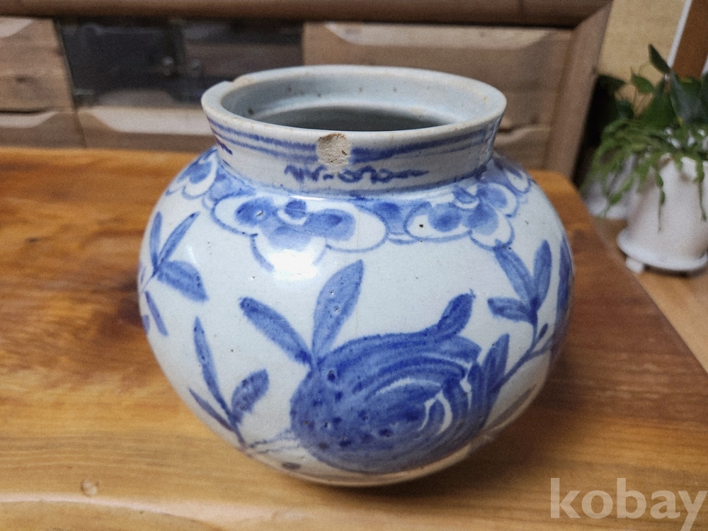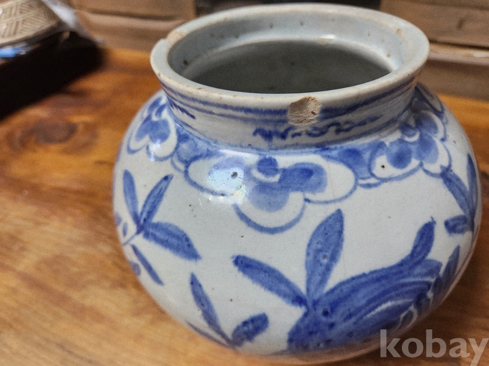 다실 한 켠에 큰 달항아리 보다 아담한 이 항아리가 고태미도 있고 옛 도공의 솜씨와 그림이 볼수록 감탄이 나는 물건 입니다