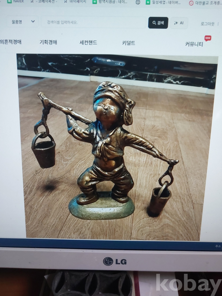 조형미 좋은 해학적인 물지개를 지고 있는 아동 브론즈 작품입니다.