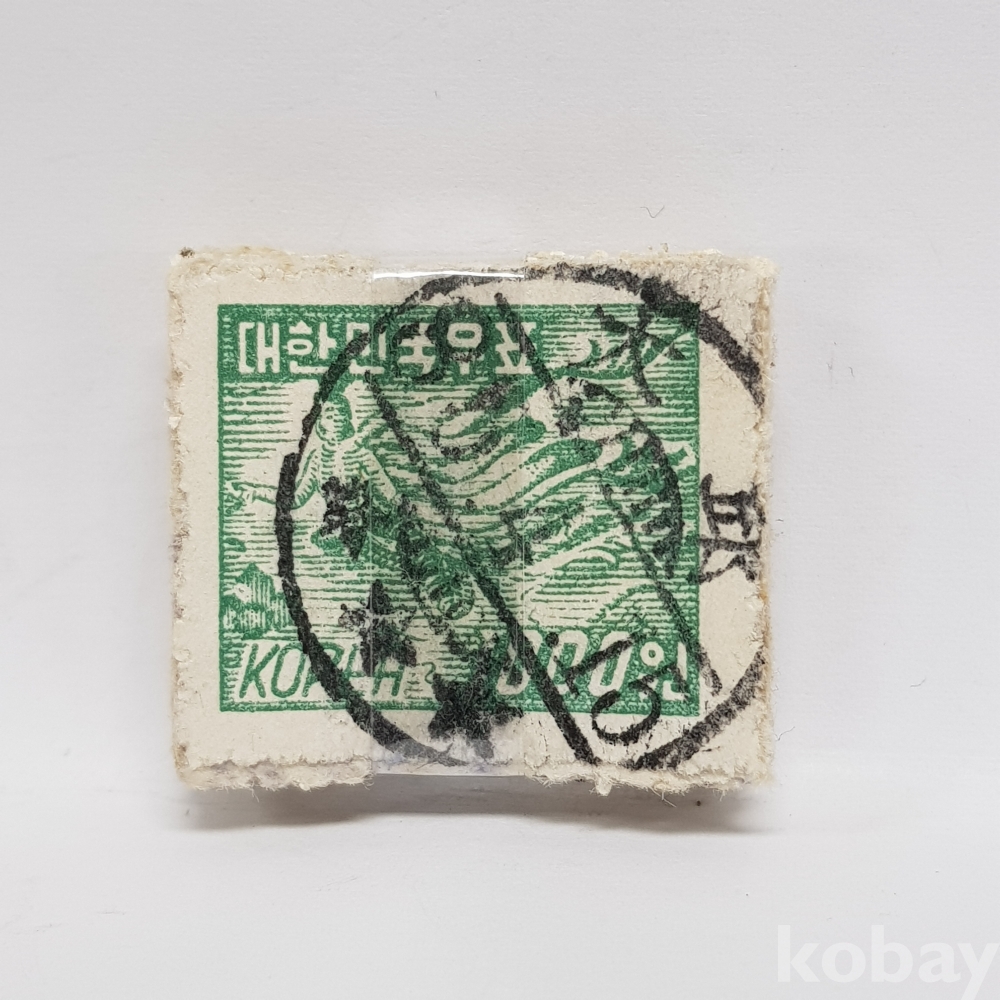 - 1950년대 동양정판사 1000원 천인공양도 일부인 미확인 사용제 우표 약 50매 묶음