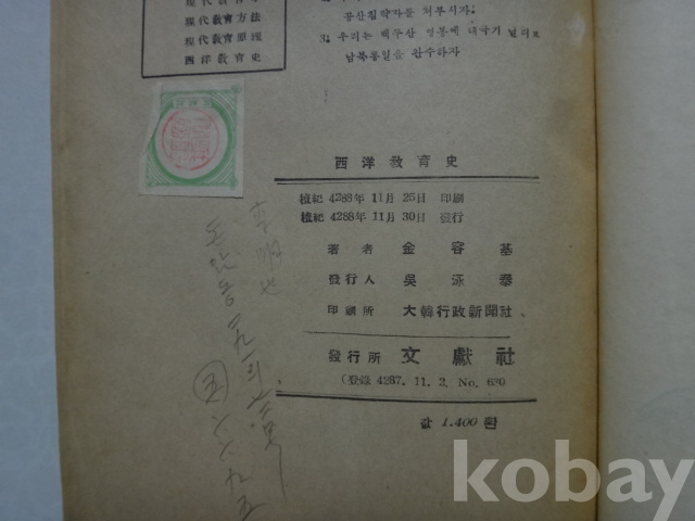 서양 교육사 (1955년, 김용기 저, 문헌사)