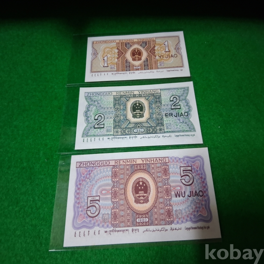 중국 1980년 1,2,5각 3종 미사용