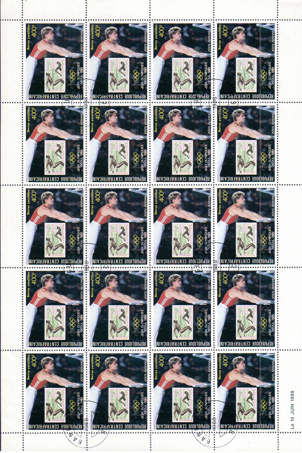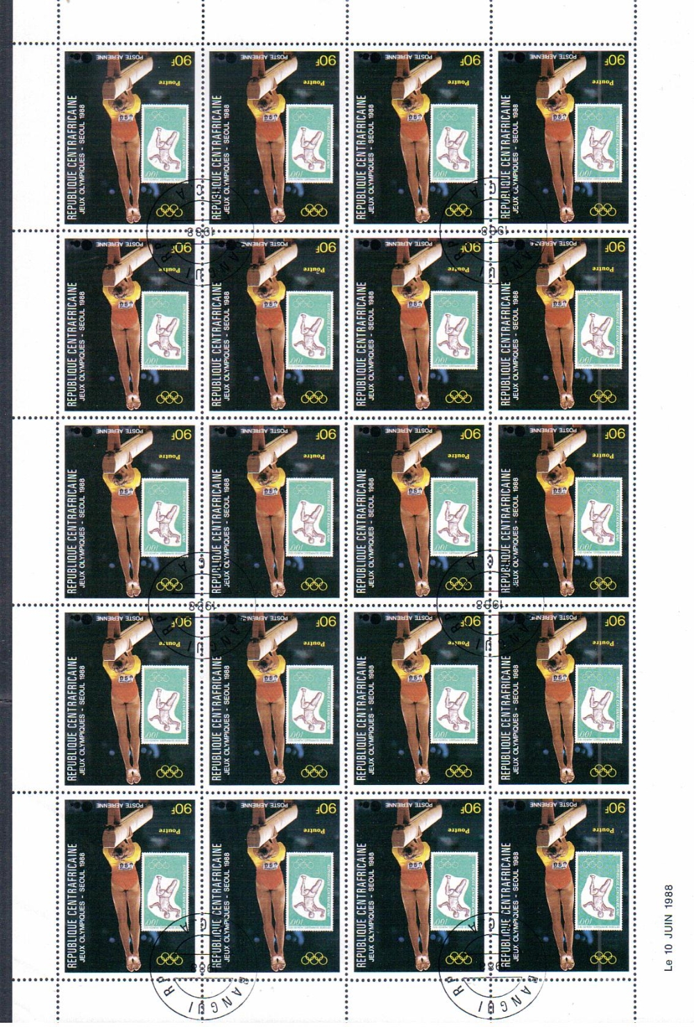 88서울올림픽 중앙아푸리카 4완 소인전지 [우표.시트 희귀품 ]