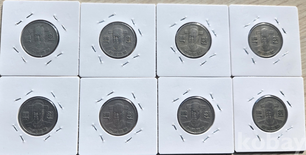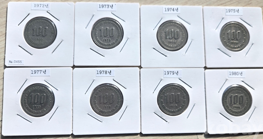 1972년 100원 주화 (구도안) 부터 1980년 까지 각 년도 사용제 1개씩 총 8 개