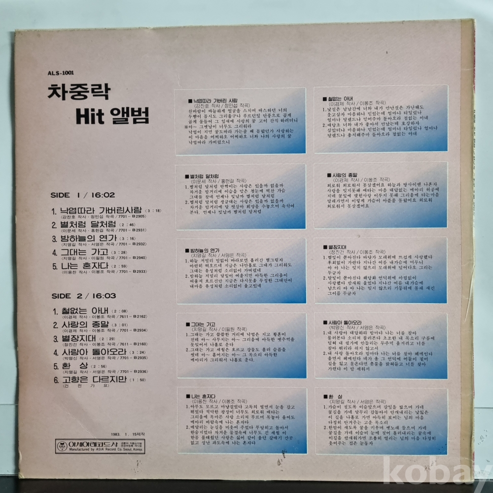 | 제조국 | 한국 | 발매연도 | 1983 |