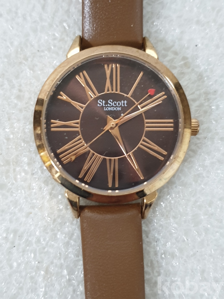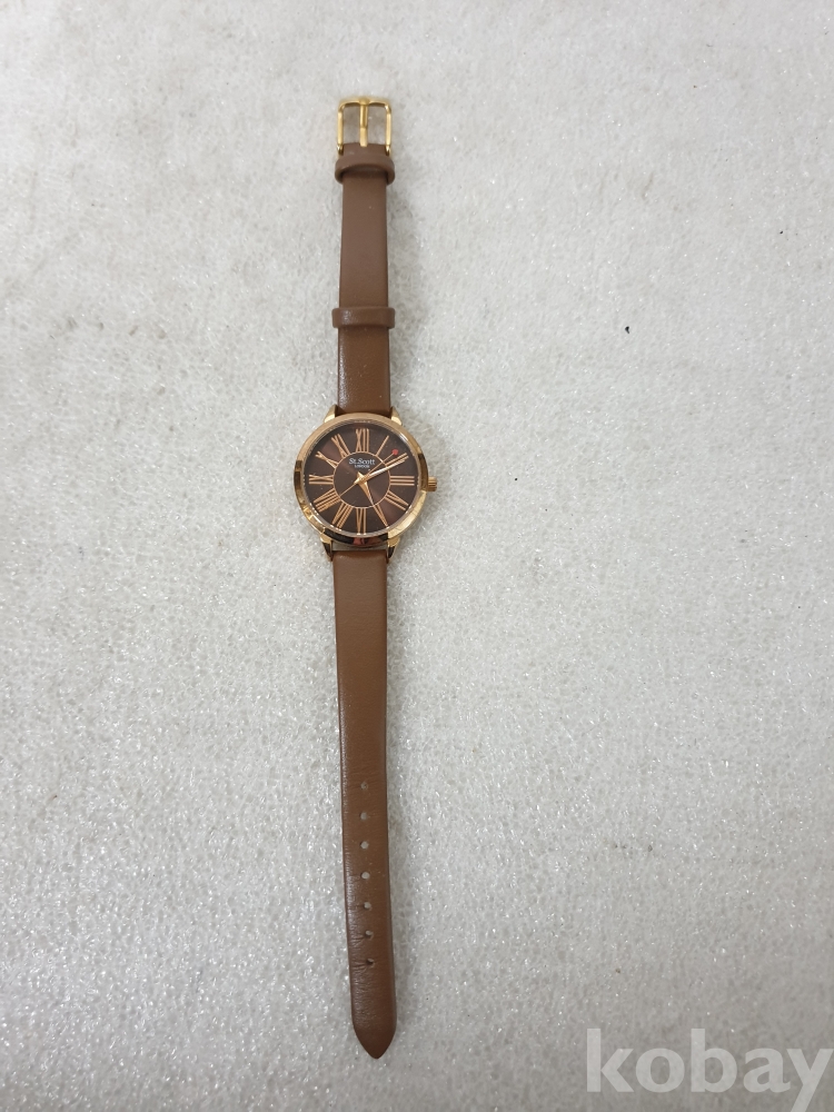 {천원경매} 2-0867 세인트스코트 갈색 가죽줄 손목시계 (*작동확인불가)