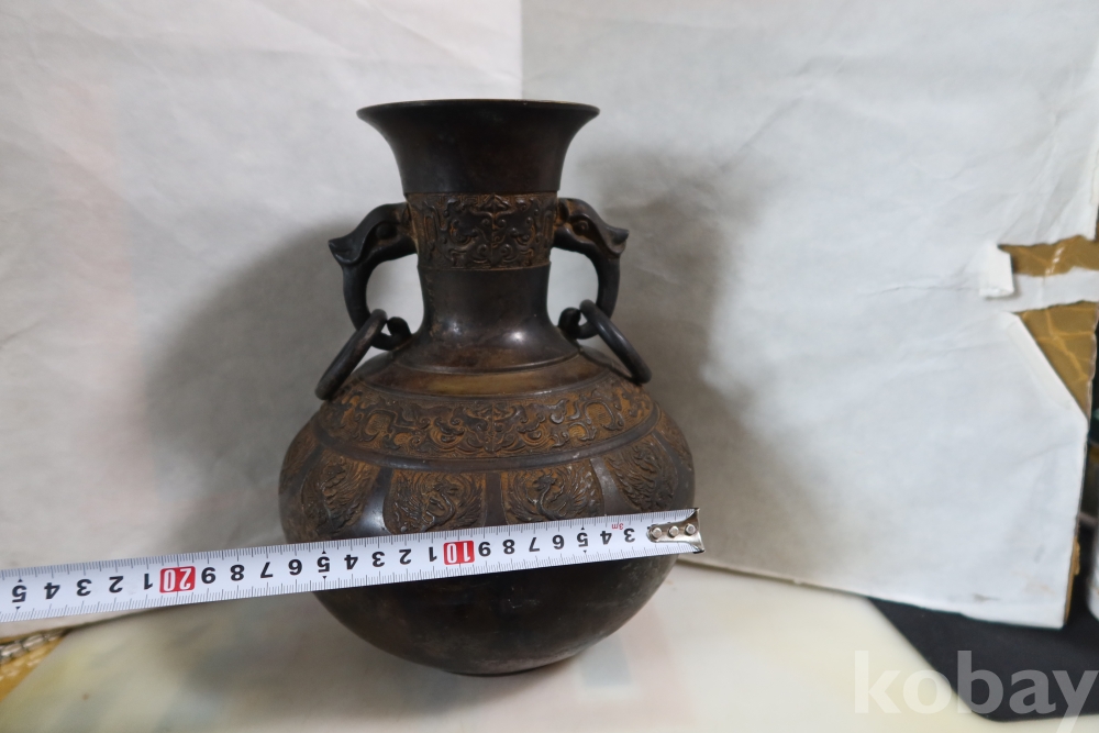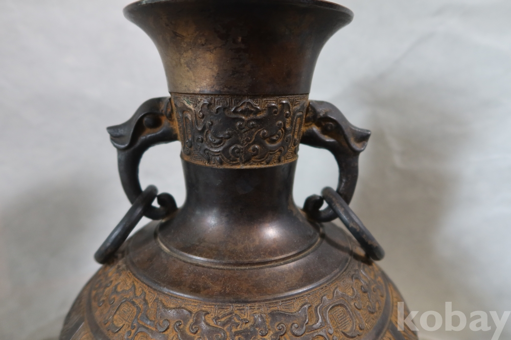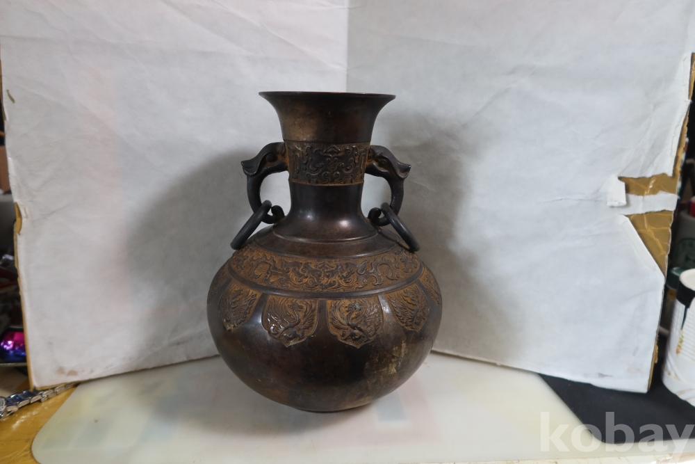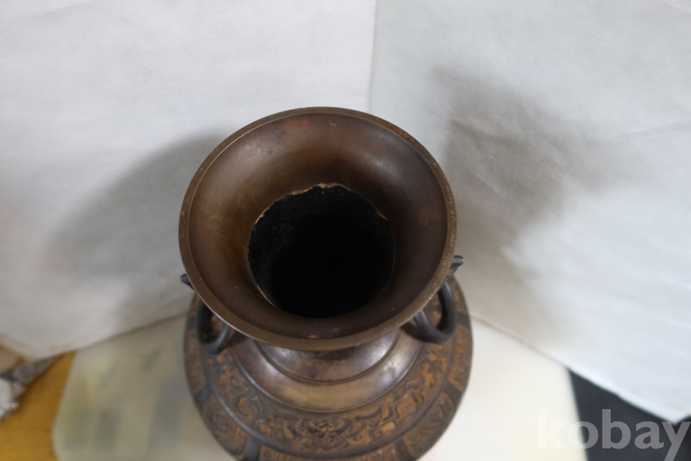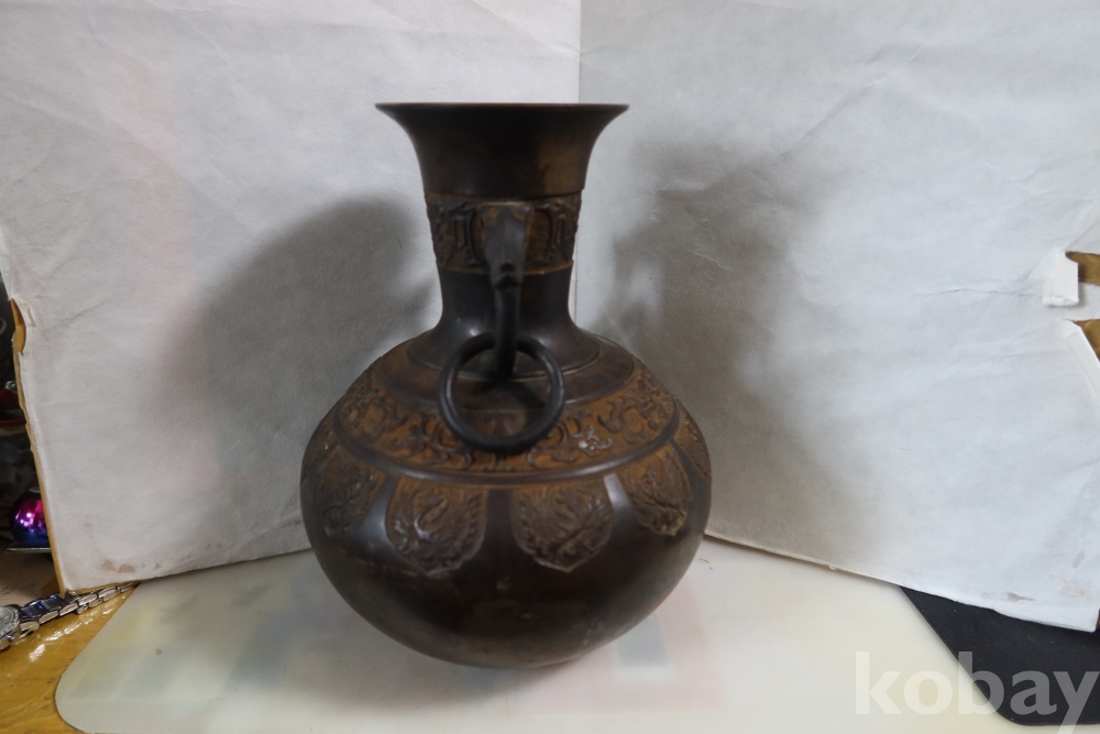 당대의 명품 청동 화병 임니다 작가의 혼을 보여주는 명작 이며 1930대 이후의 명품 임니다 고태미를 가진 무감과 세밀함을 가진 명물임니다