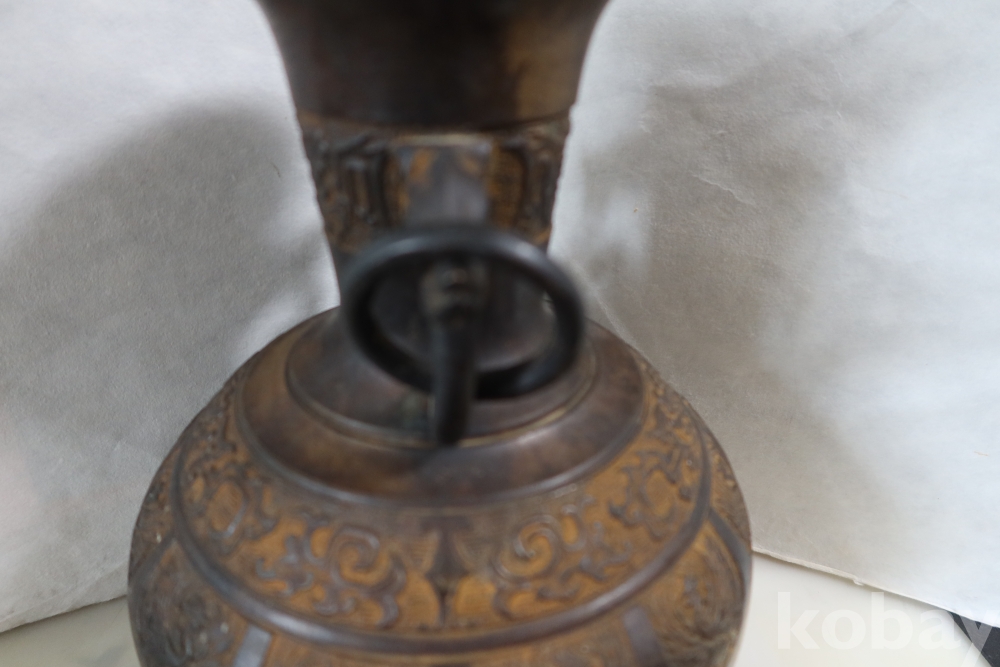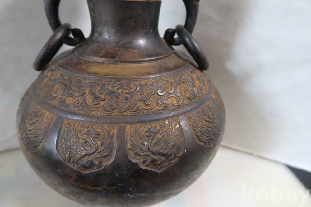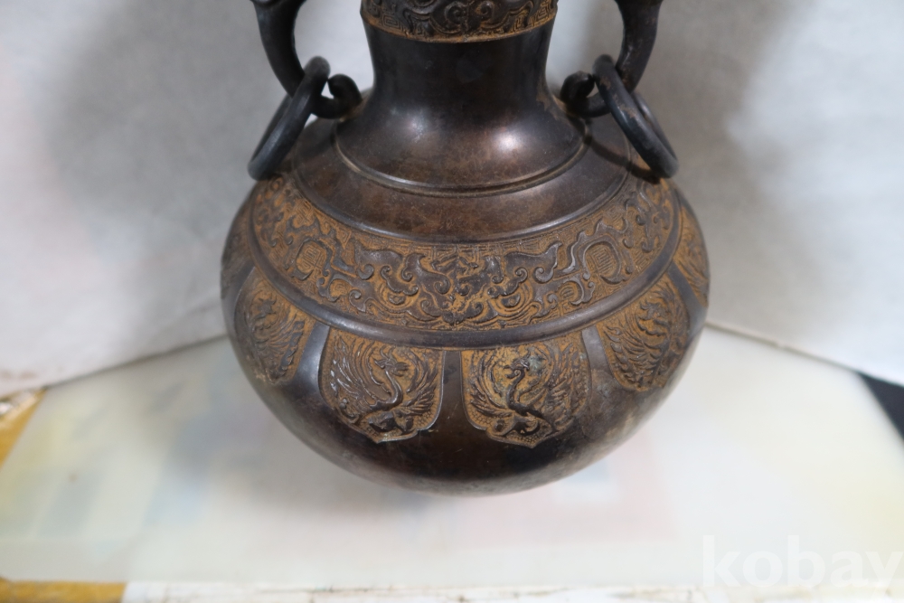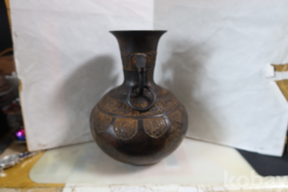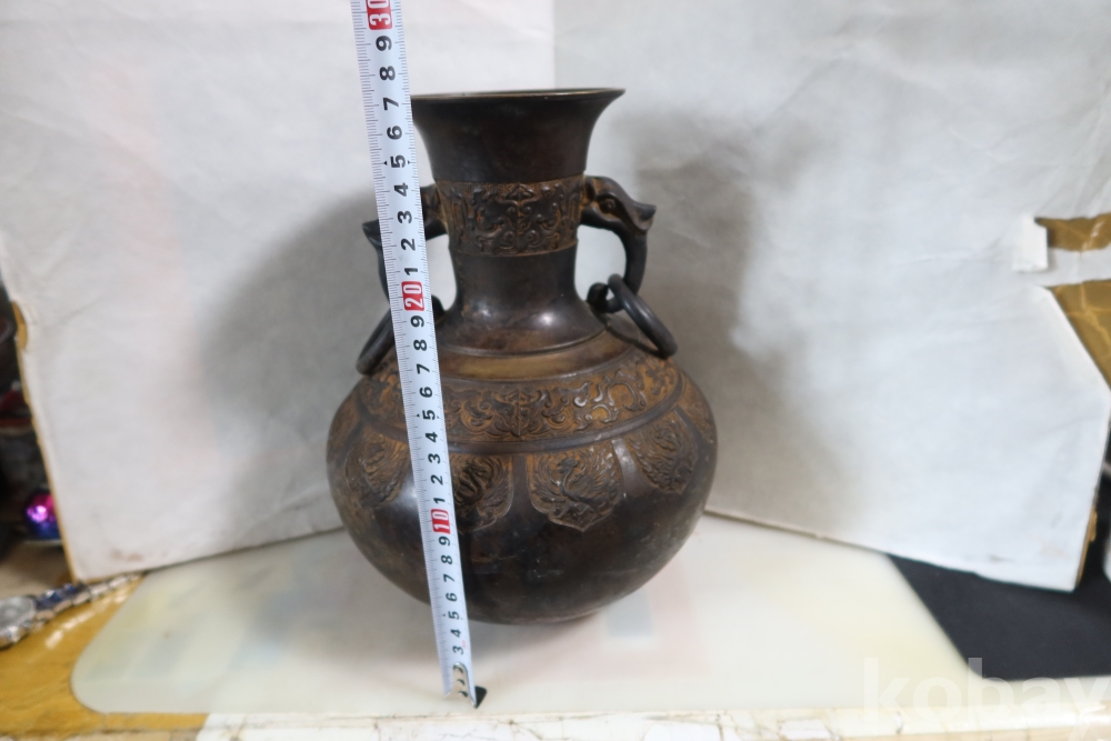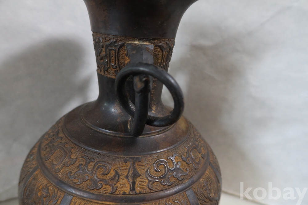 당대의 명품 청동 화병 임니다 작가의 혼을 보여주는 명작 이며 1930대 이후의 명품 임니다 고태미를 가진 무감과 세밀함을 가진 명물임니다