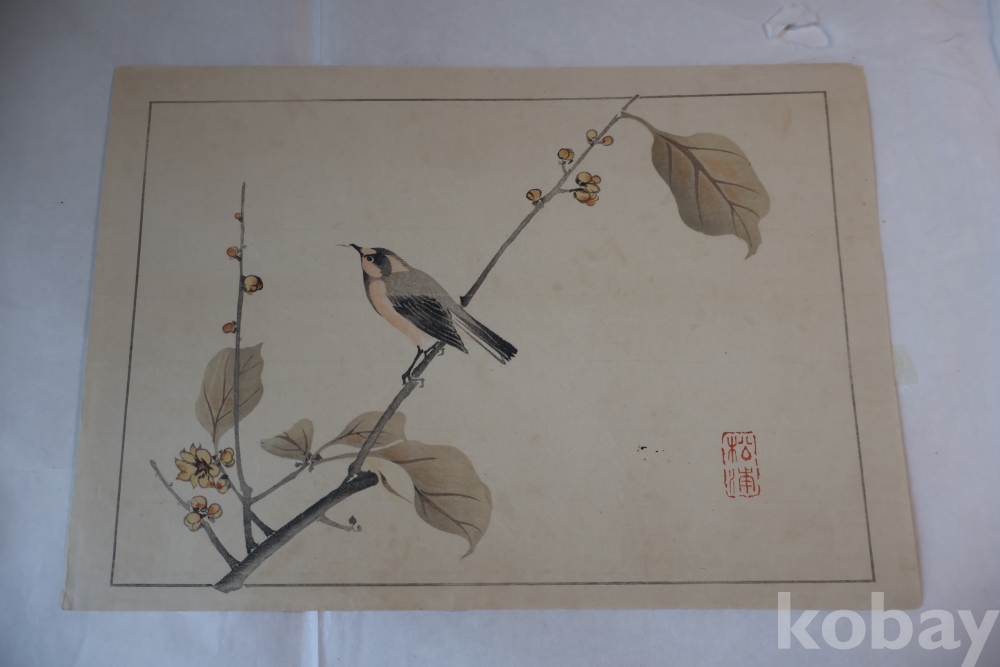 1930 대 목판화 새 임니다 아름다운 디자인 구도 섬세 함을 가진 명화 임니다 화가의 낙관이 보임니다