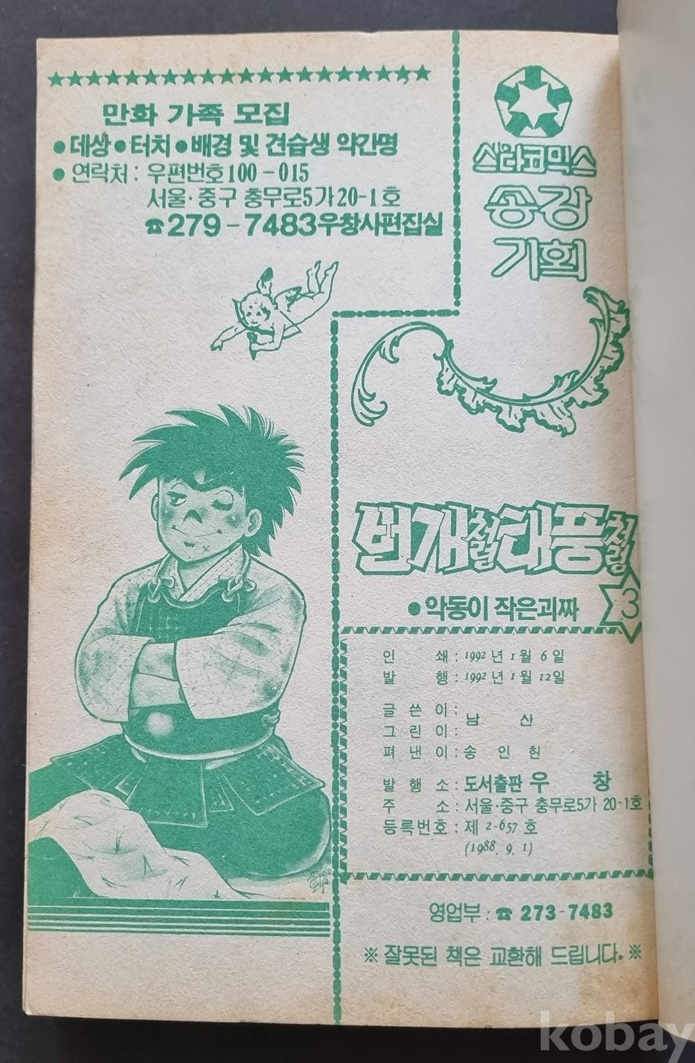 ee-32 / 스타 코믹스 만화 "번개처럼 태풍처럼" 남산 글, 그림